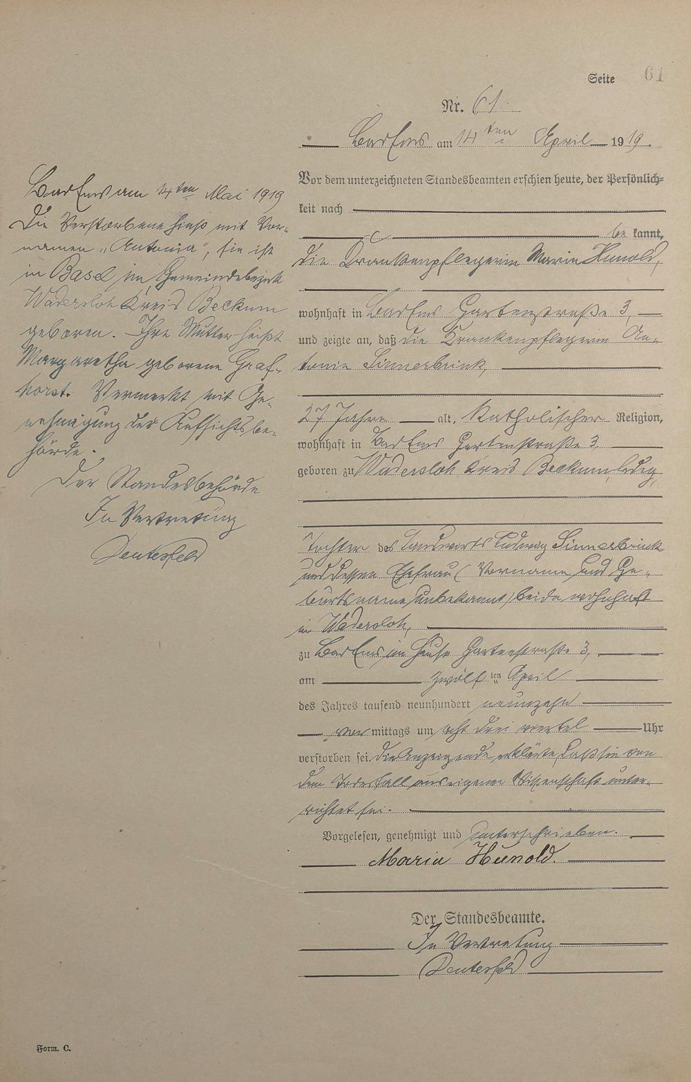 1495: Sterberegister 1919