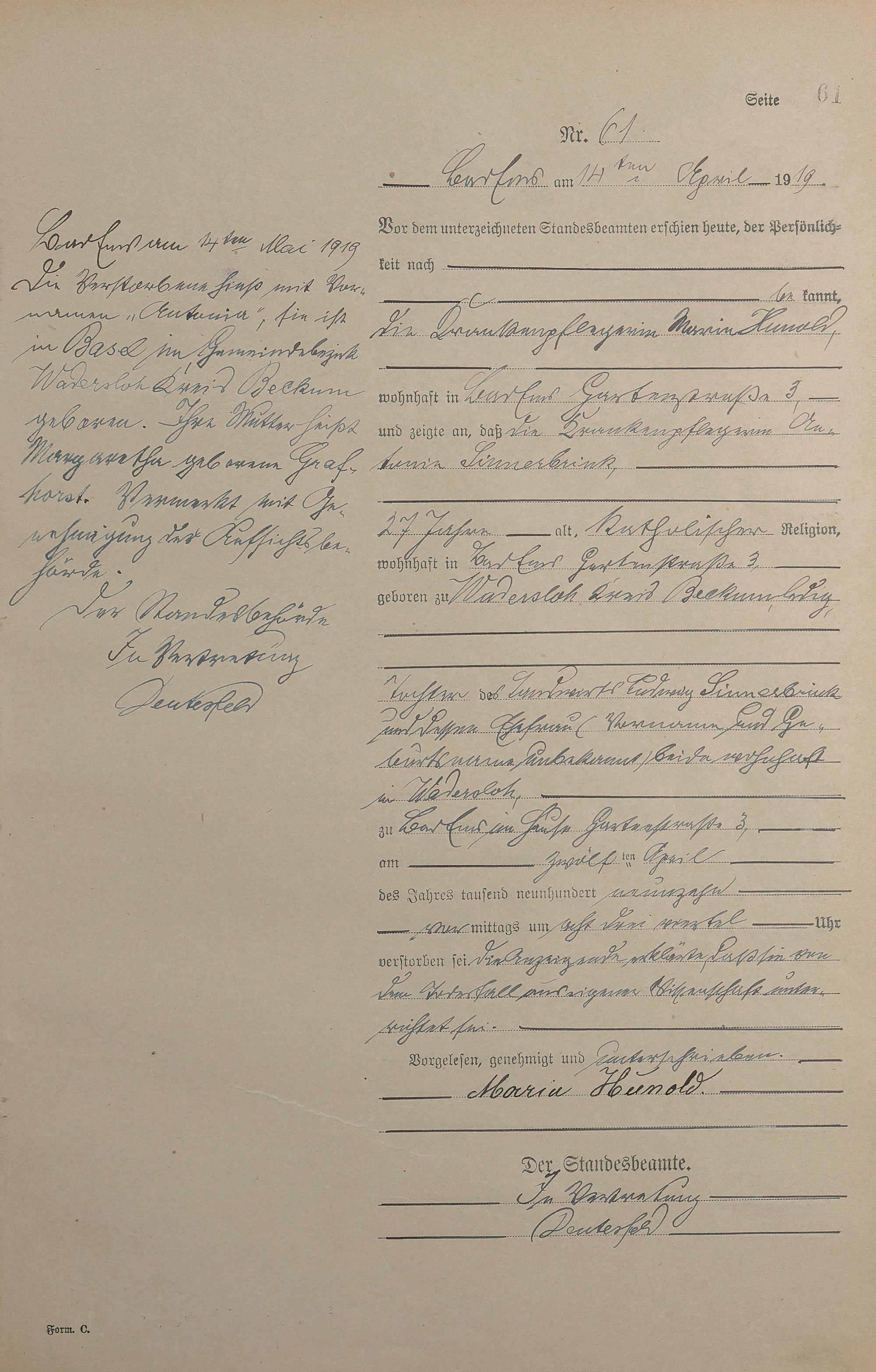 Sterberegister 1919