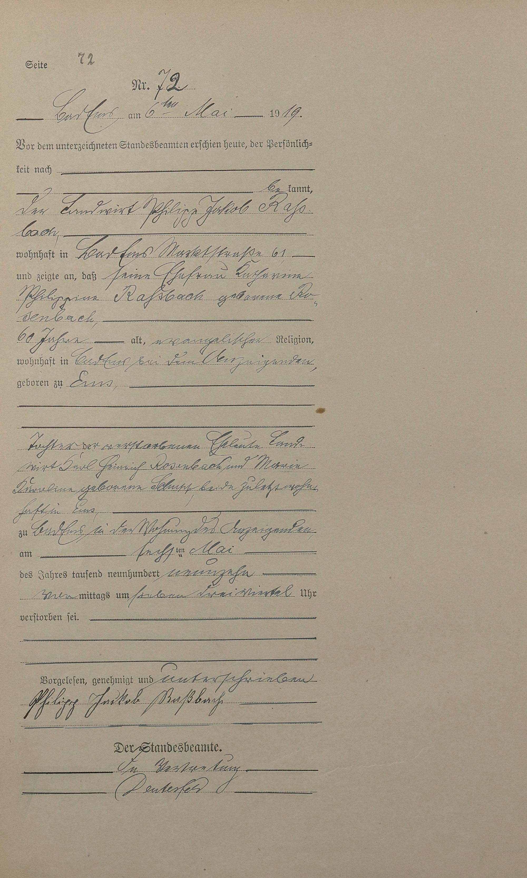 Sterberegister 1919