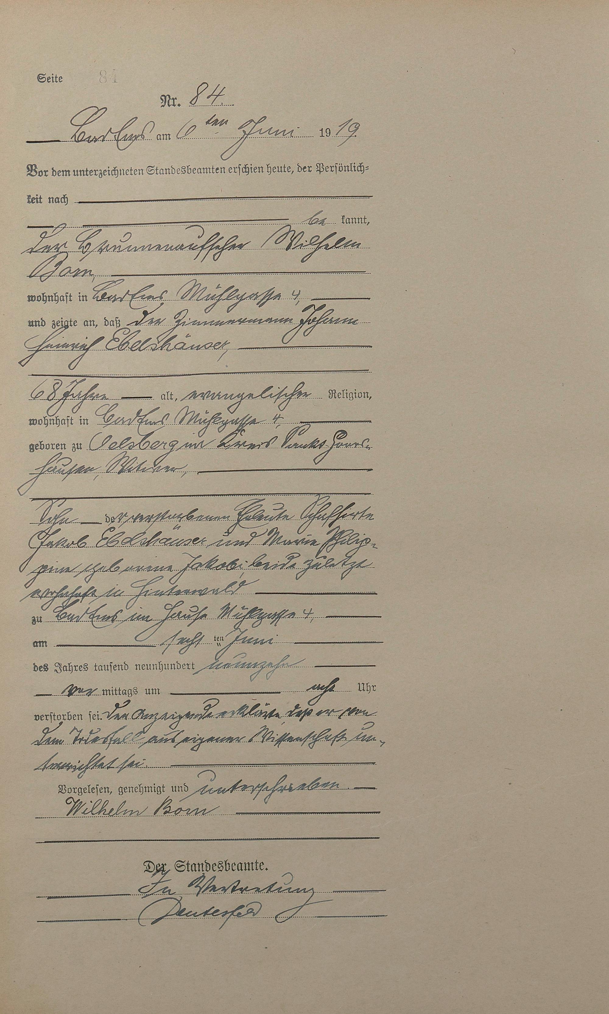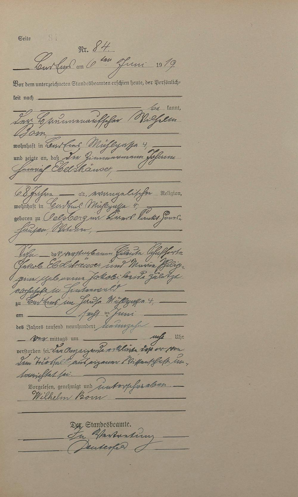 Sterberegister 1919