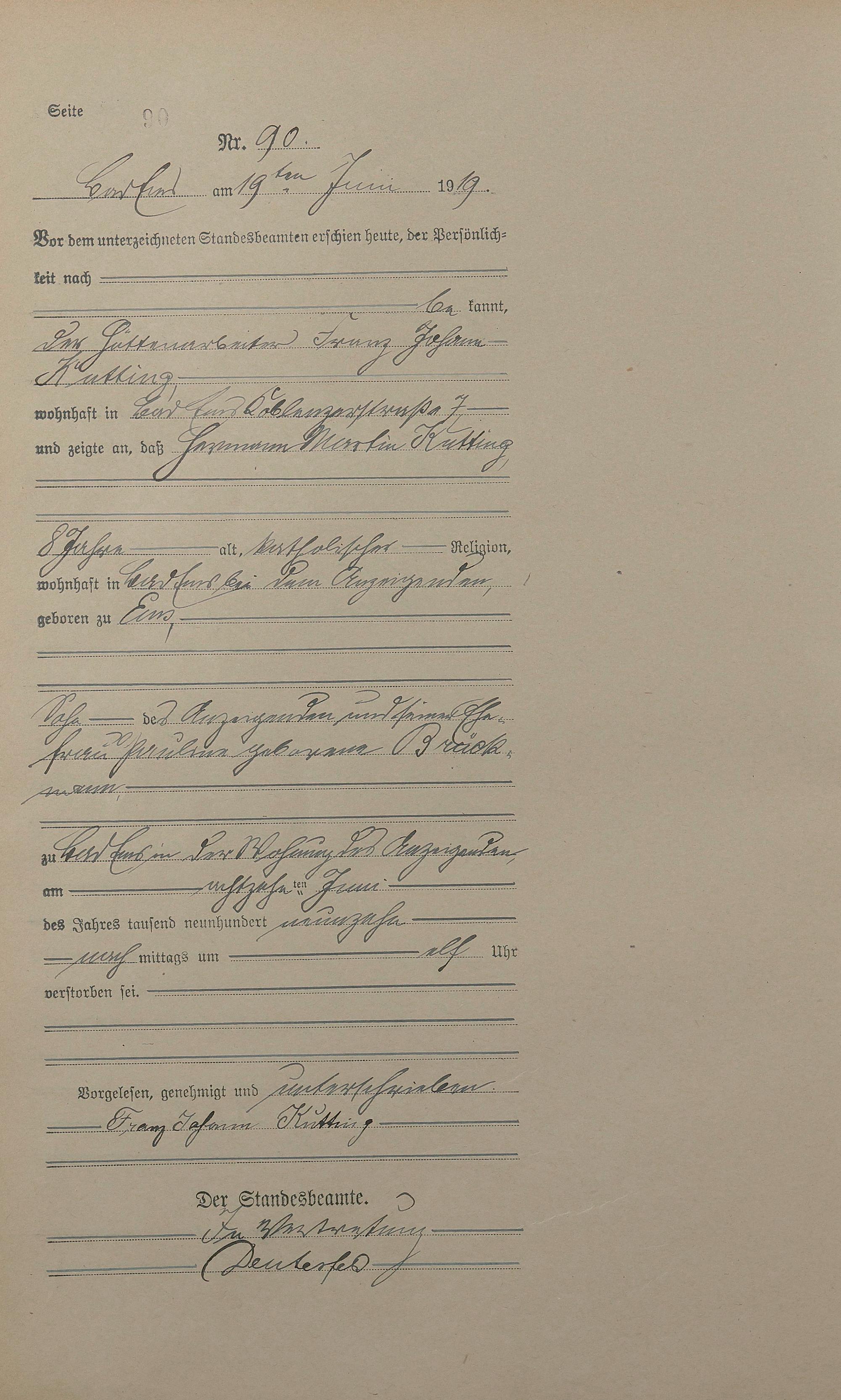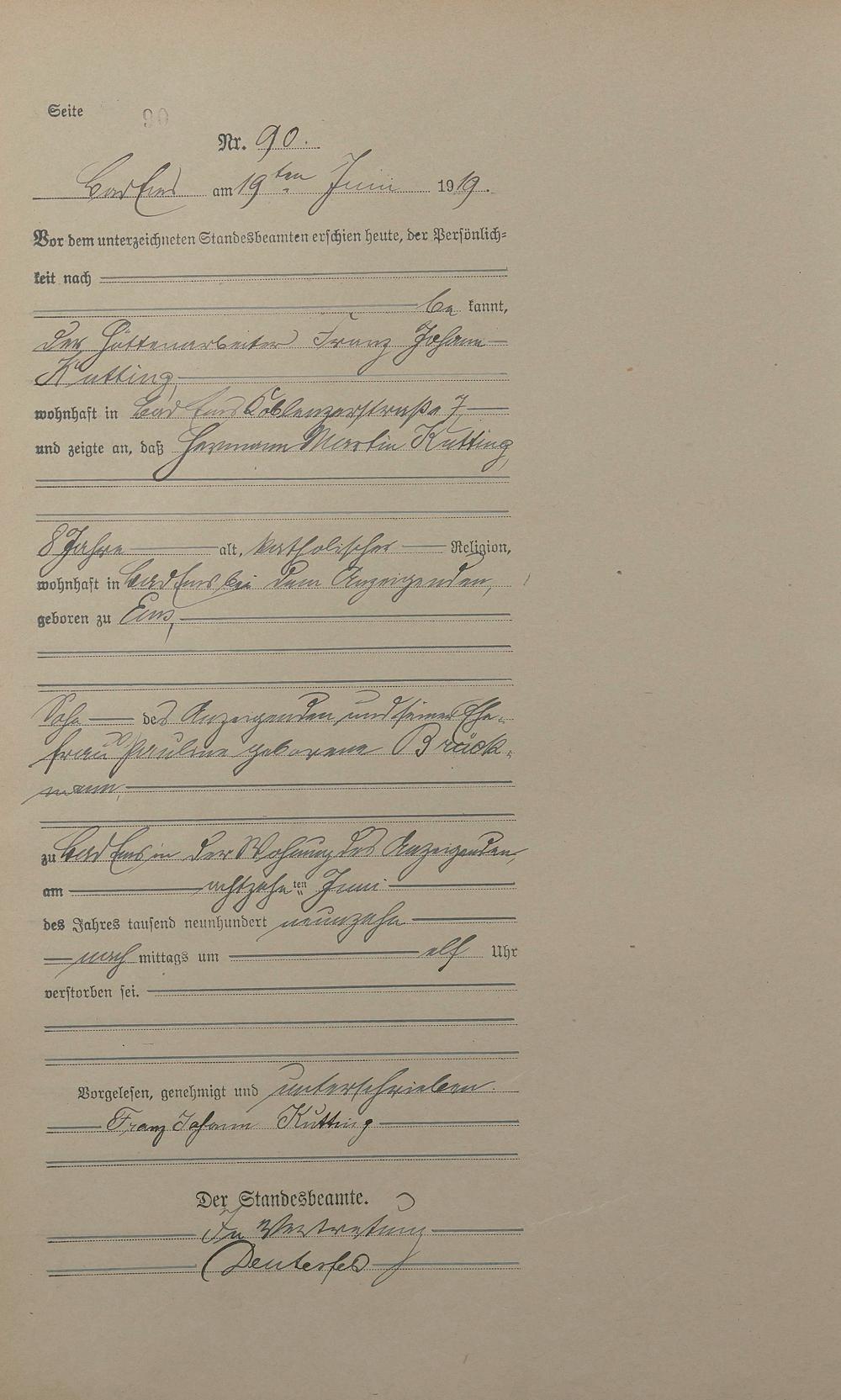 Sterberegister 1919