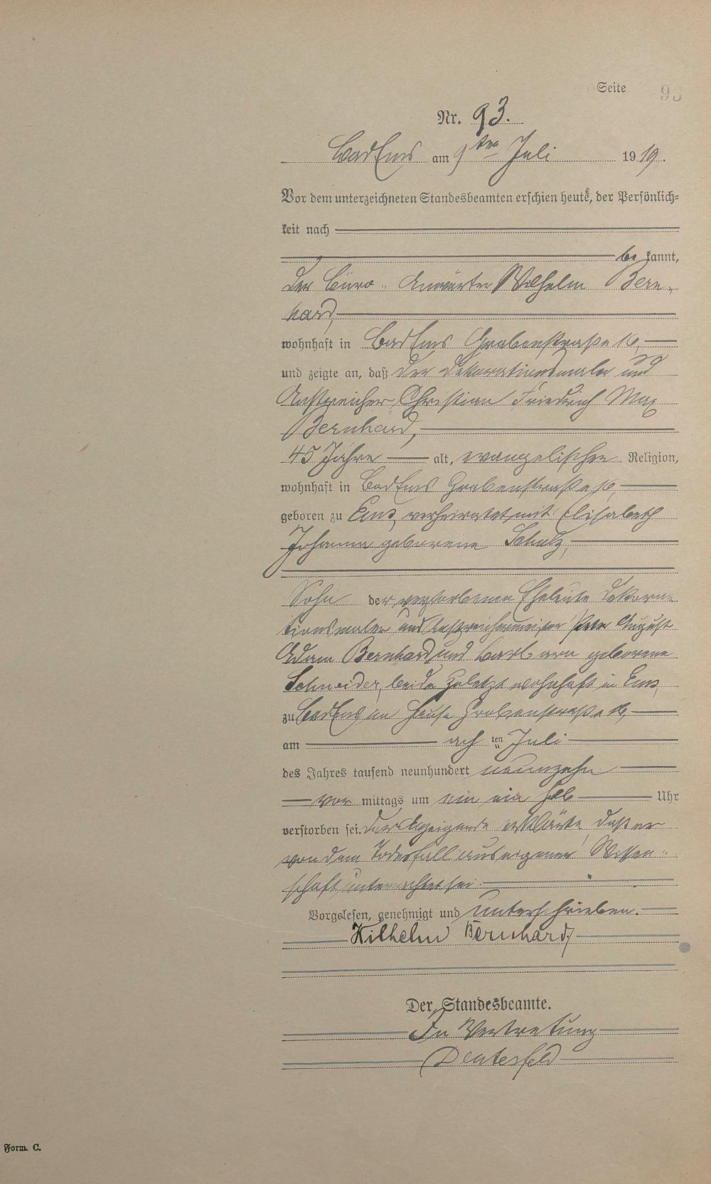 Sterberegister 1919