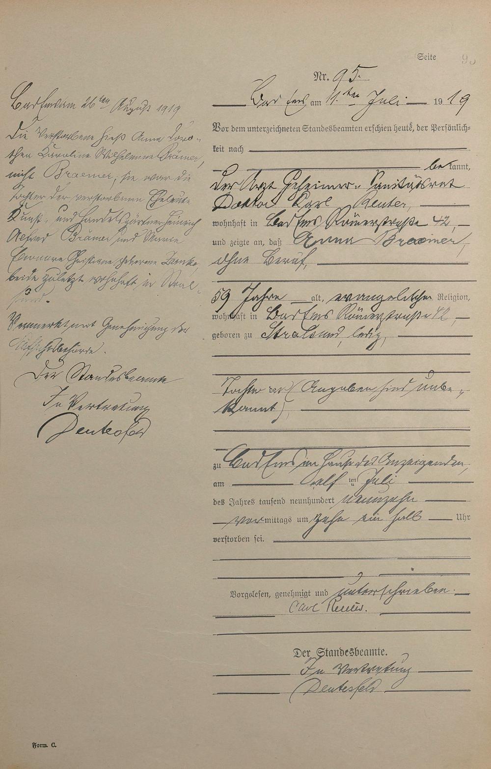1495: Sterberegister 1919