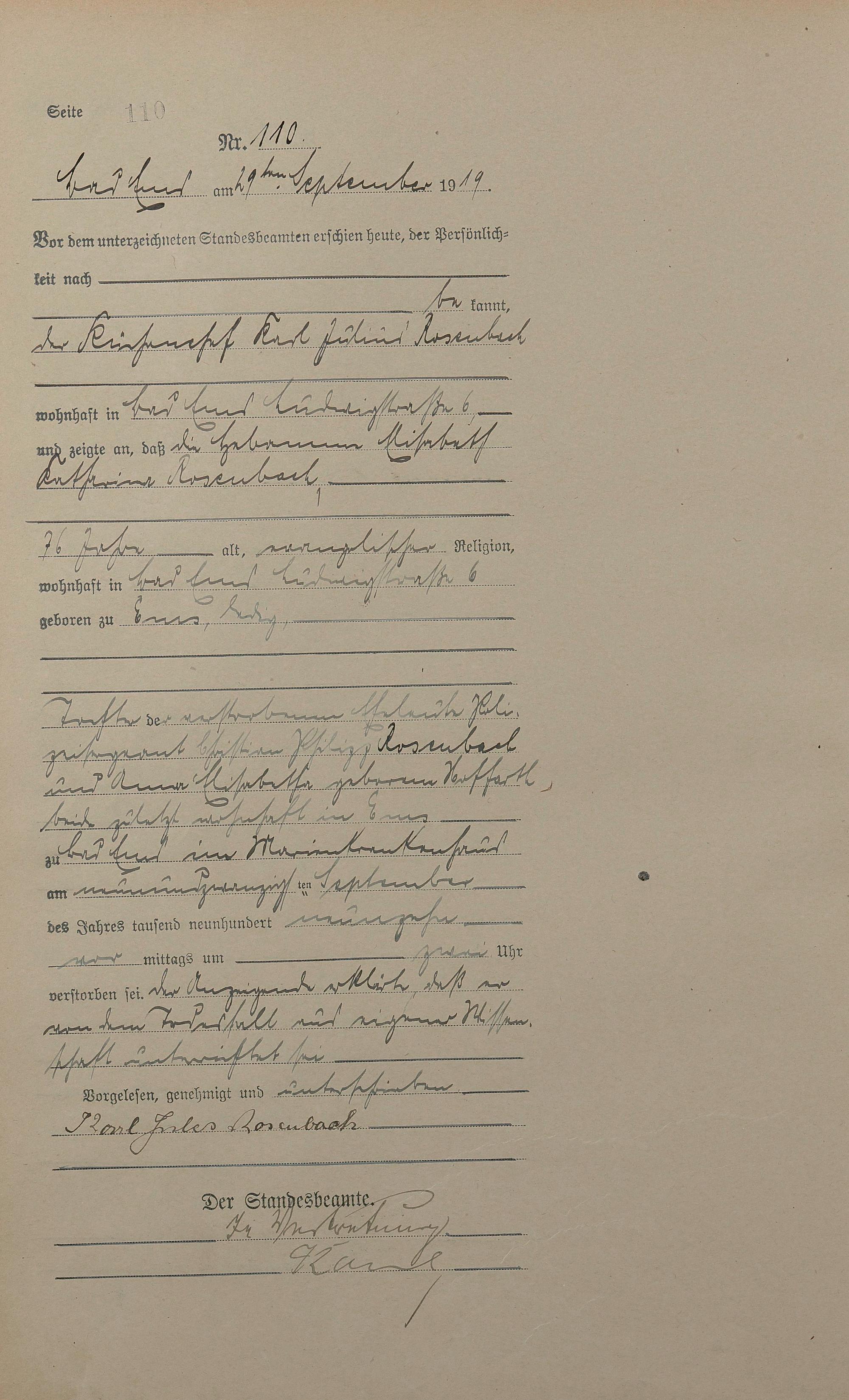 Sterberegister 1919