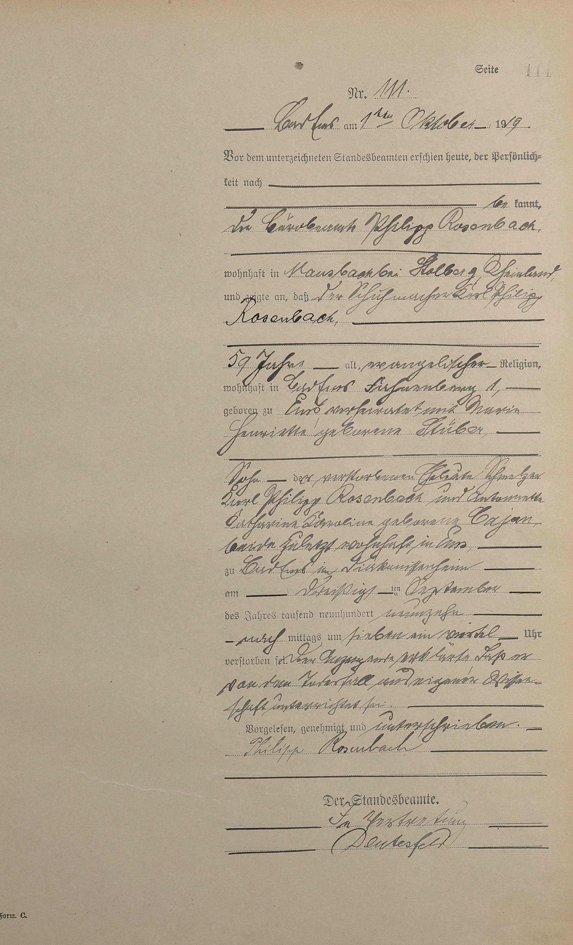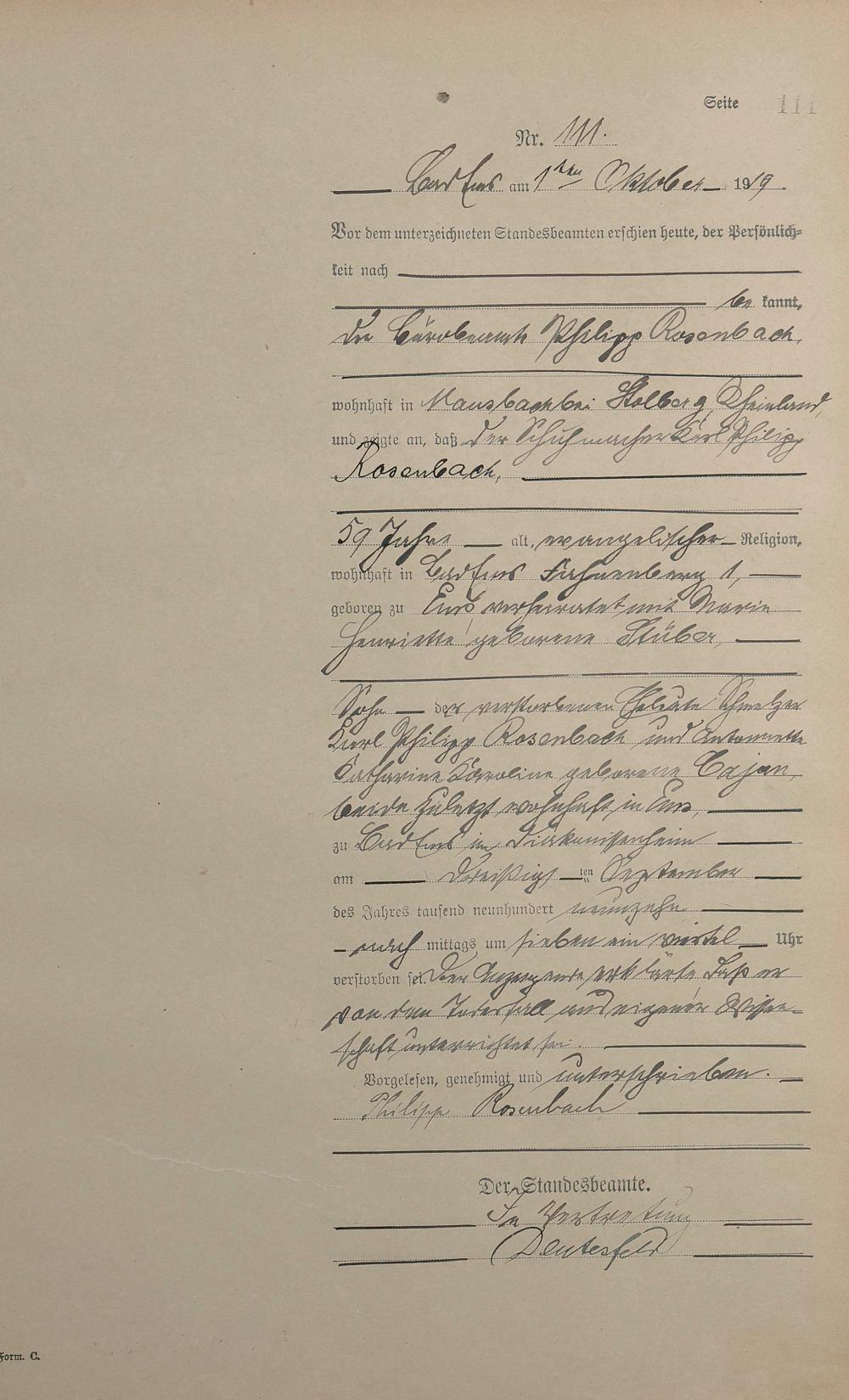 Sterberegister 1919