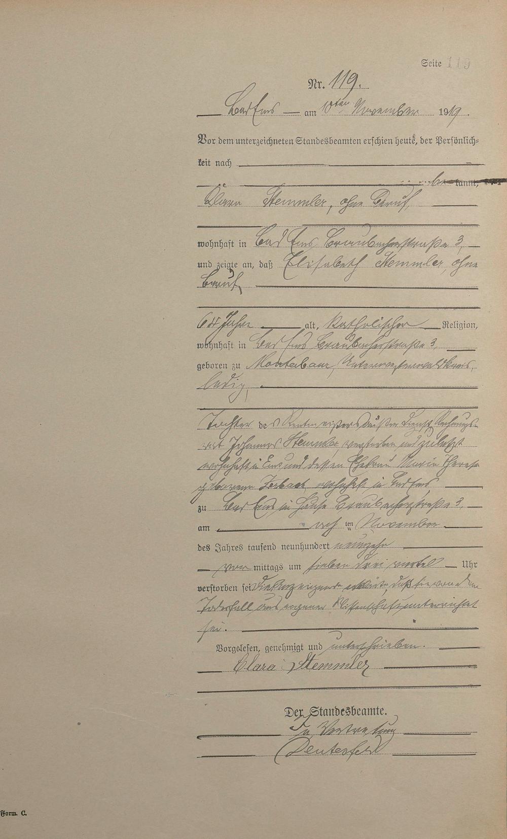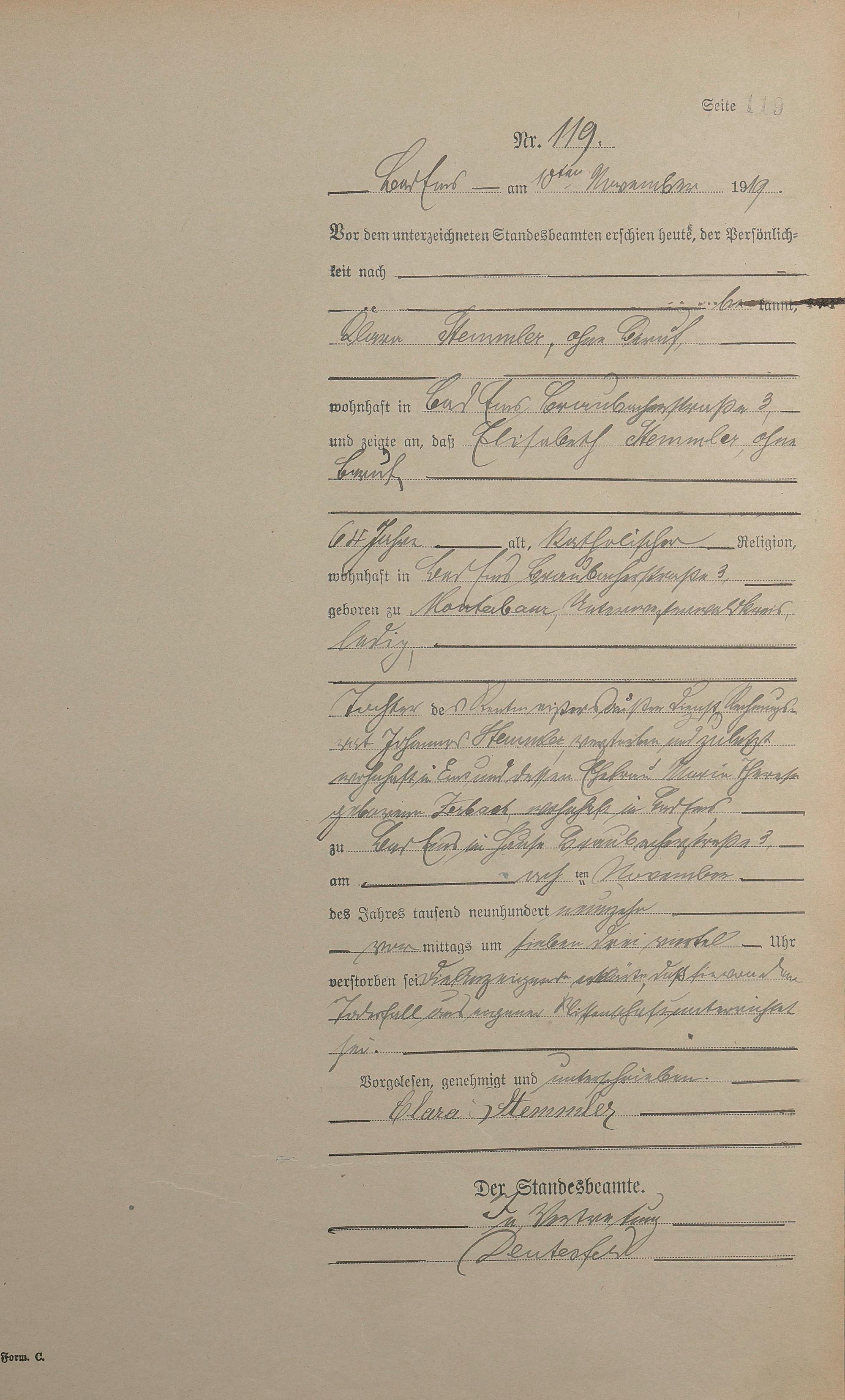 Sterberegister 1919