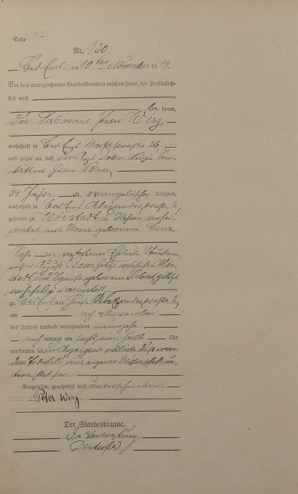 Sterberegister 1919