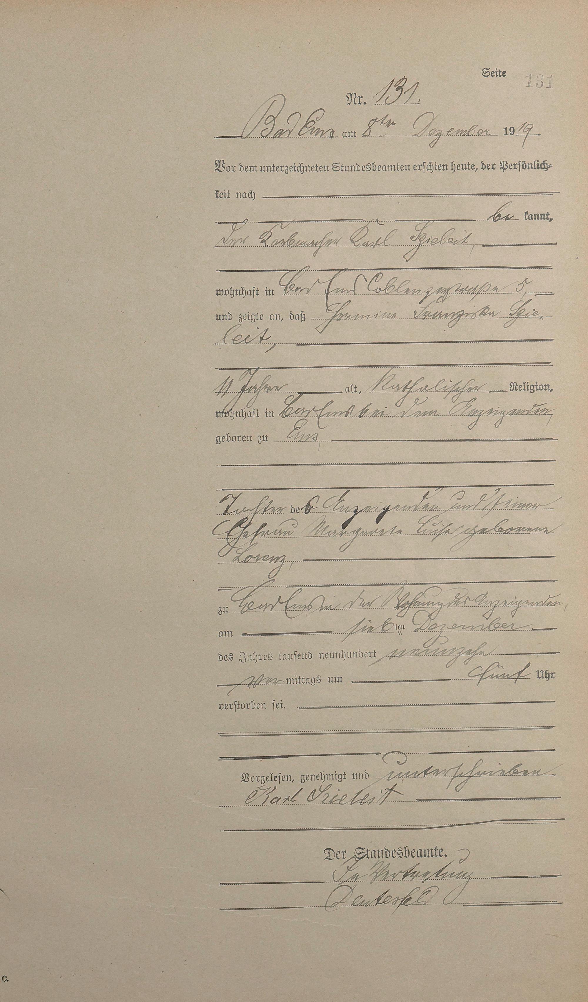 Sterberegister 1919