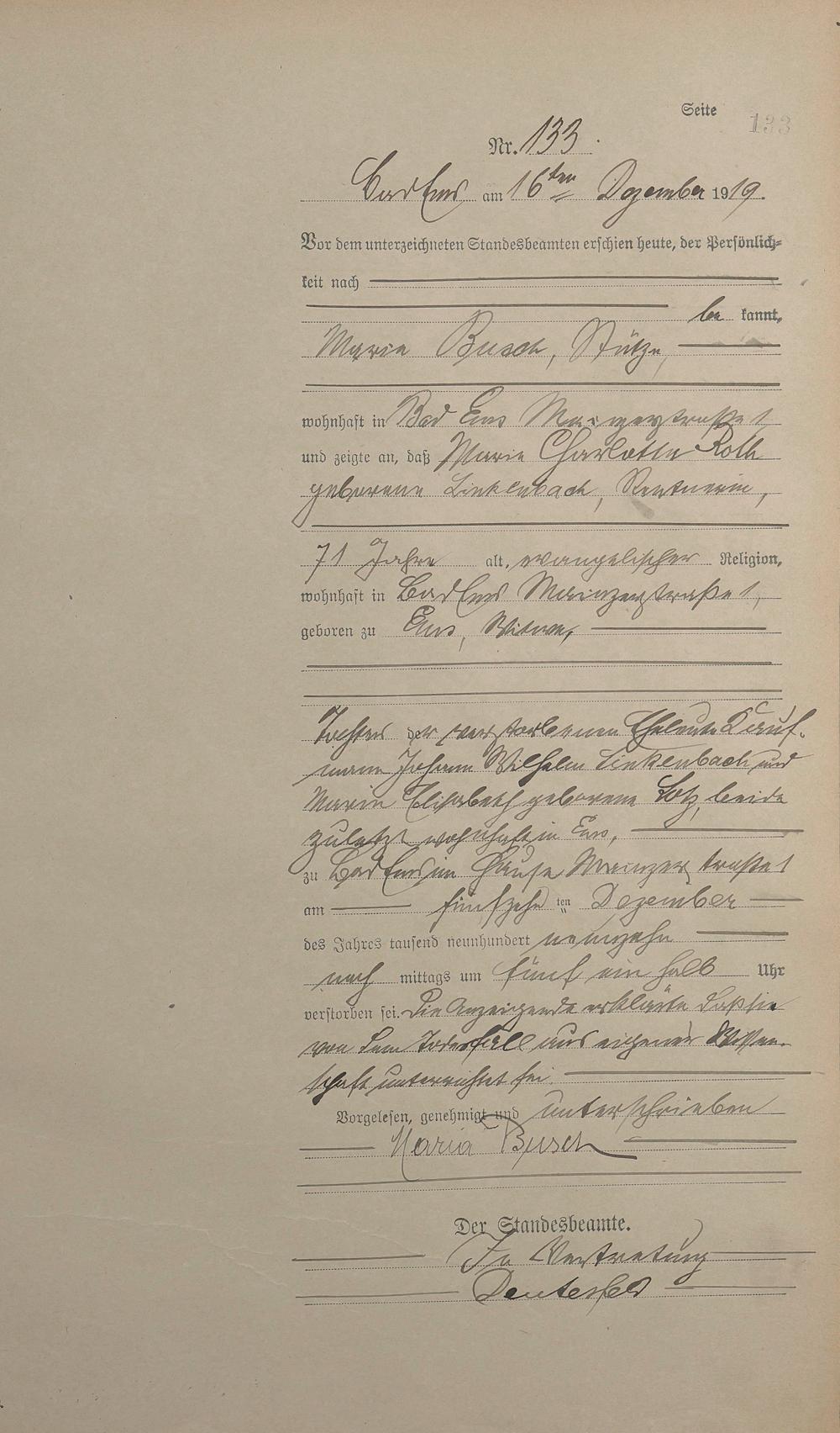 Sterberegister 1919