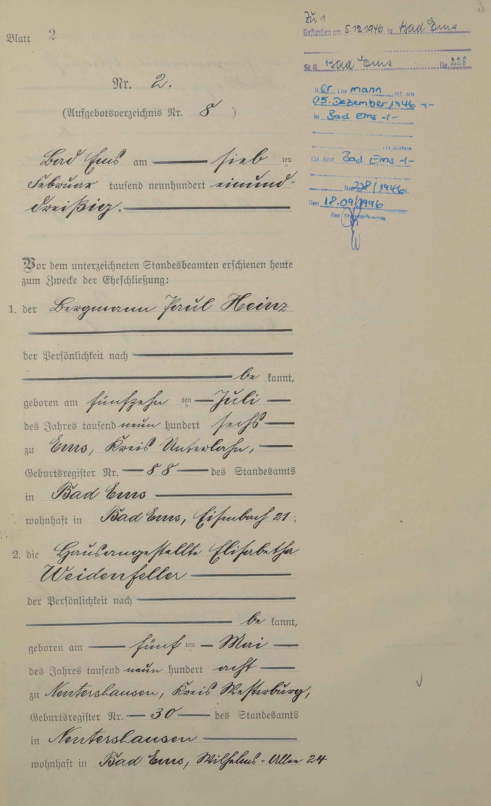 Heiratsregister 1931