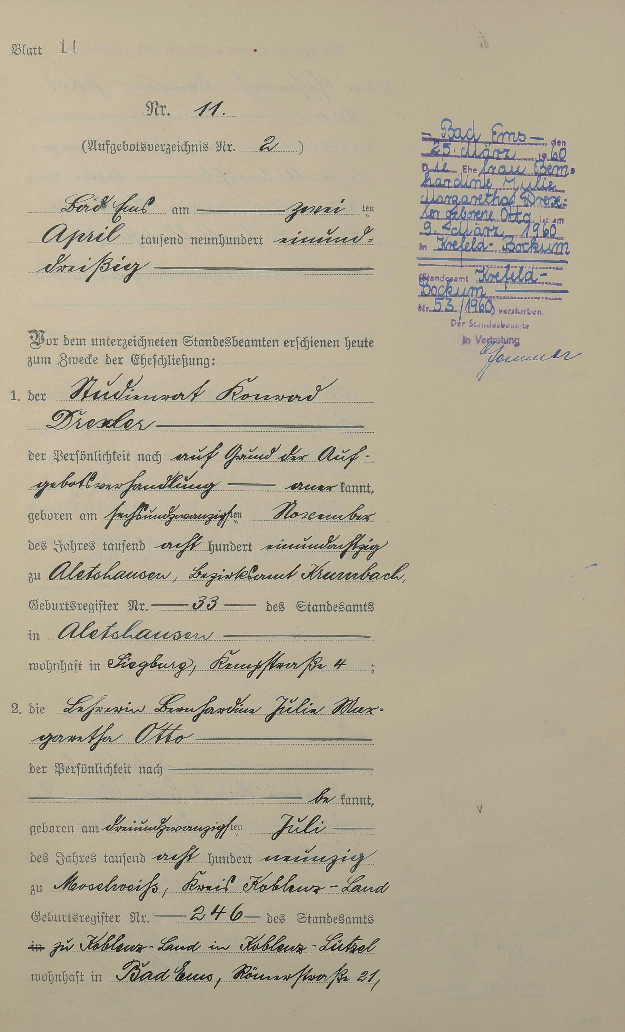 Heiratsregister 1931