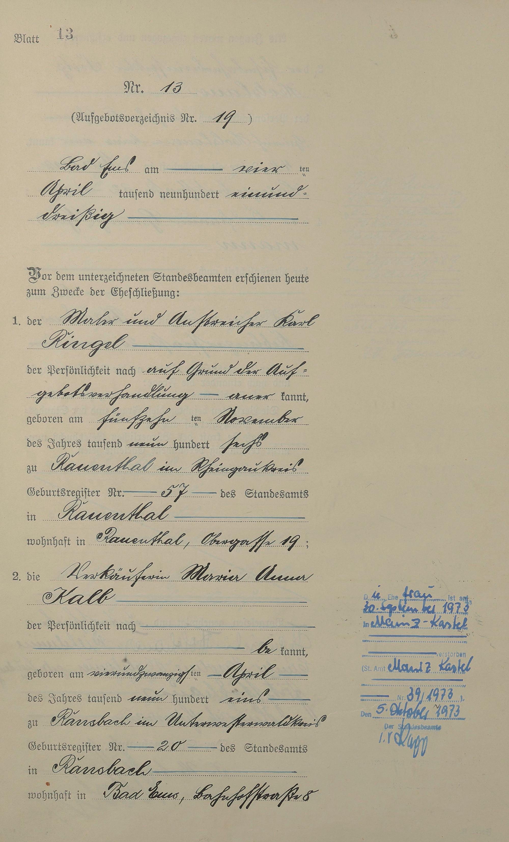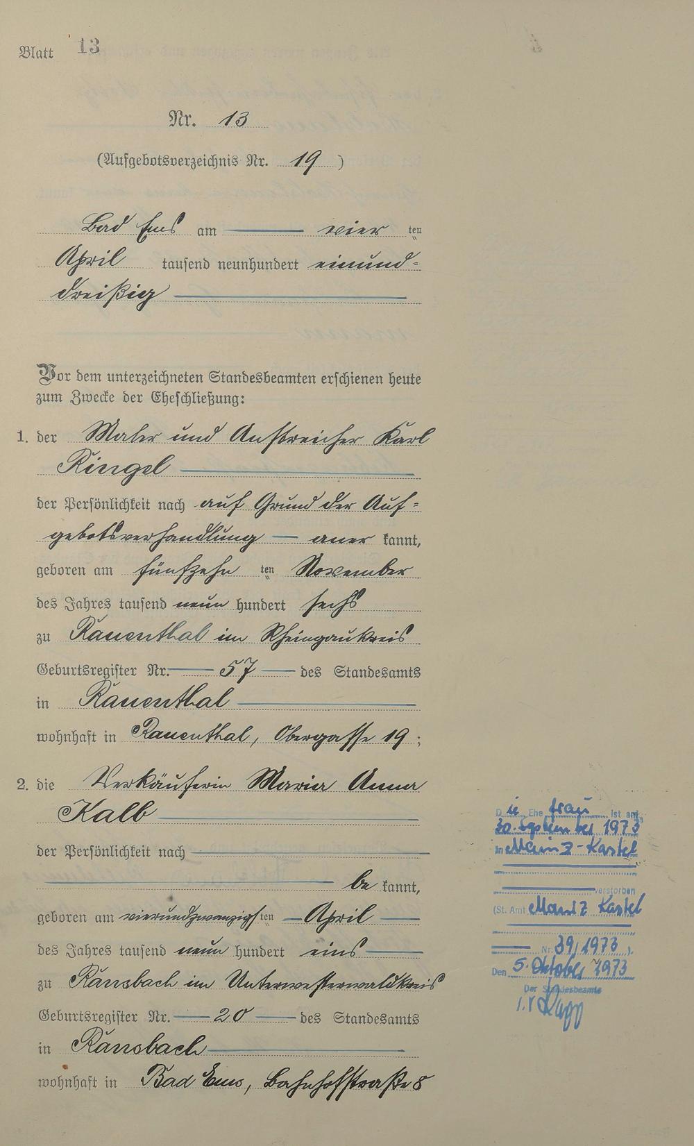Heiratsregister 1931