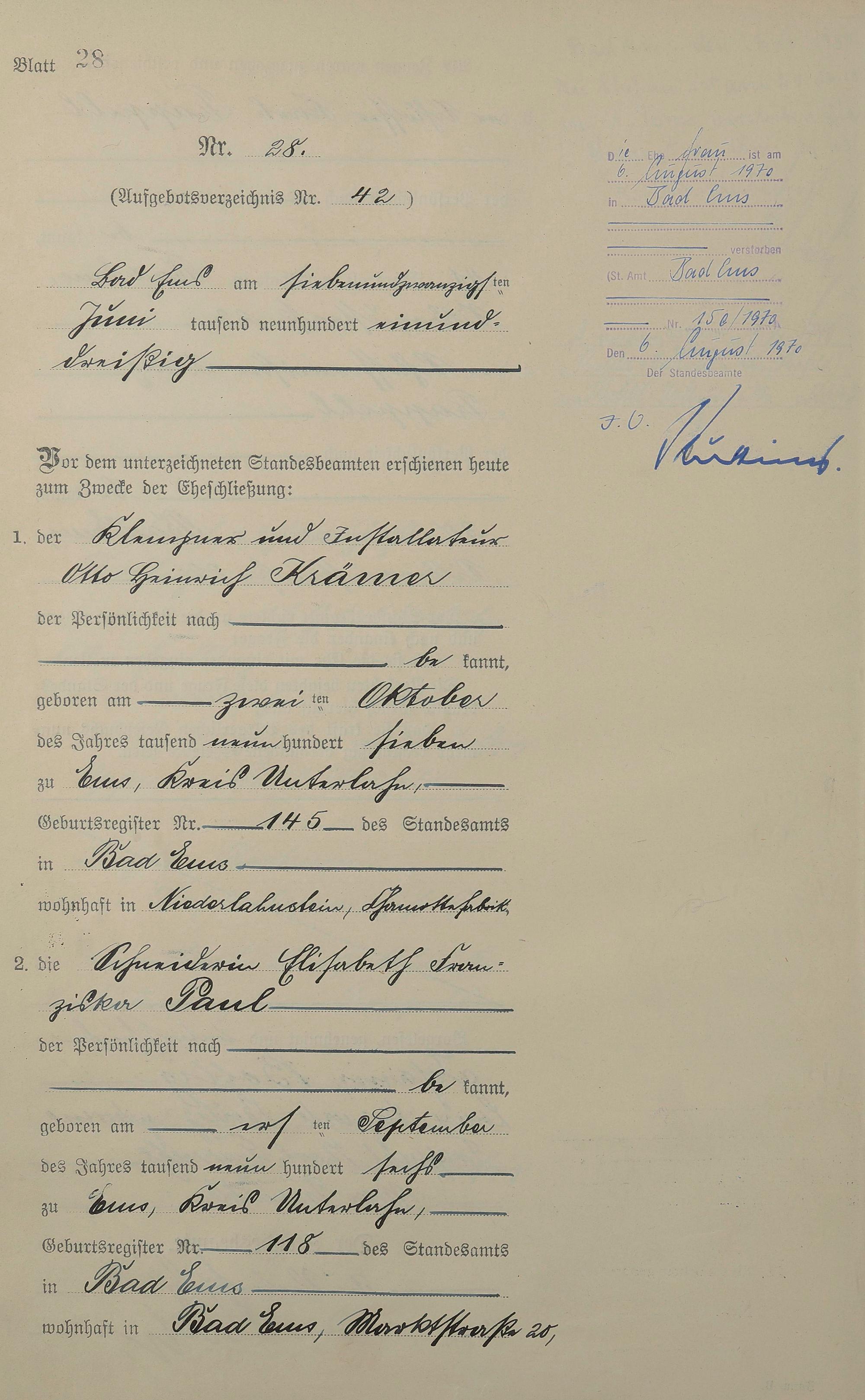 Heiratsregister 1931