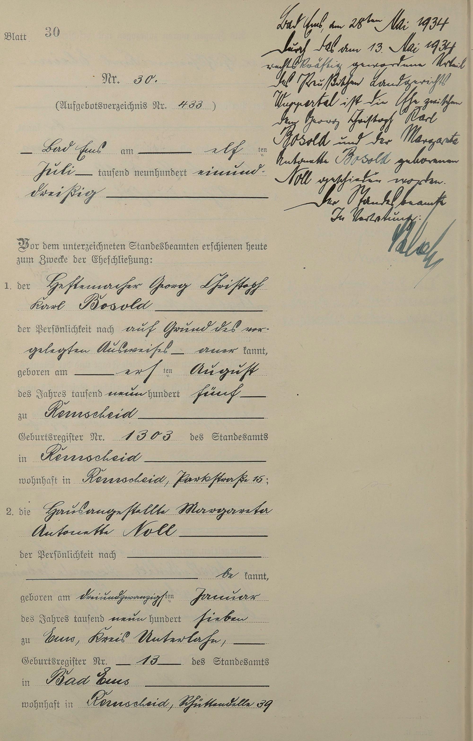 Heiratsregister 1931