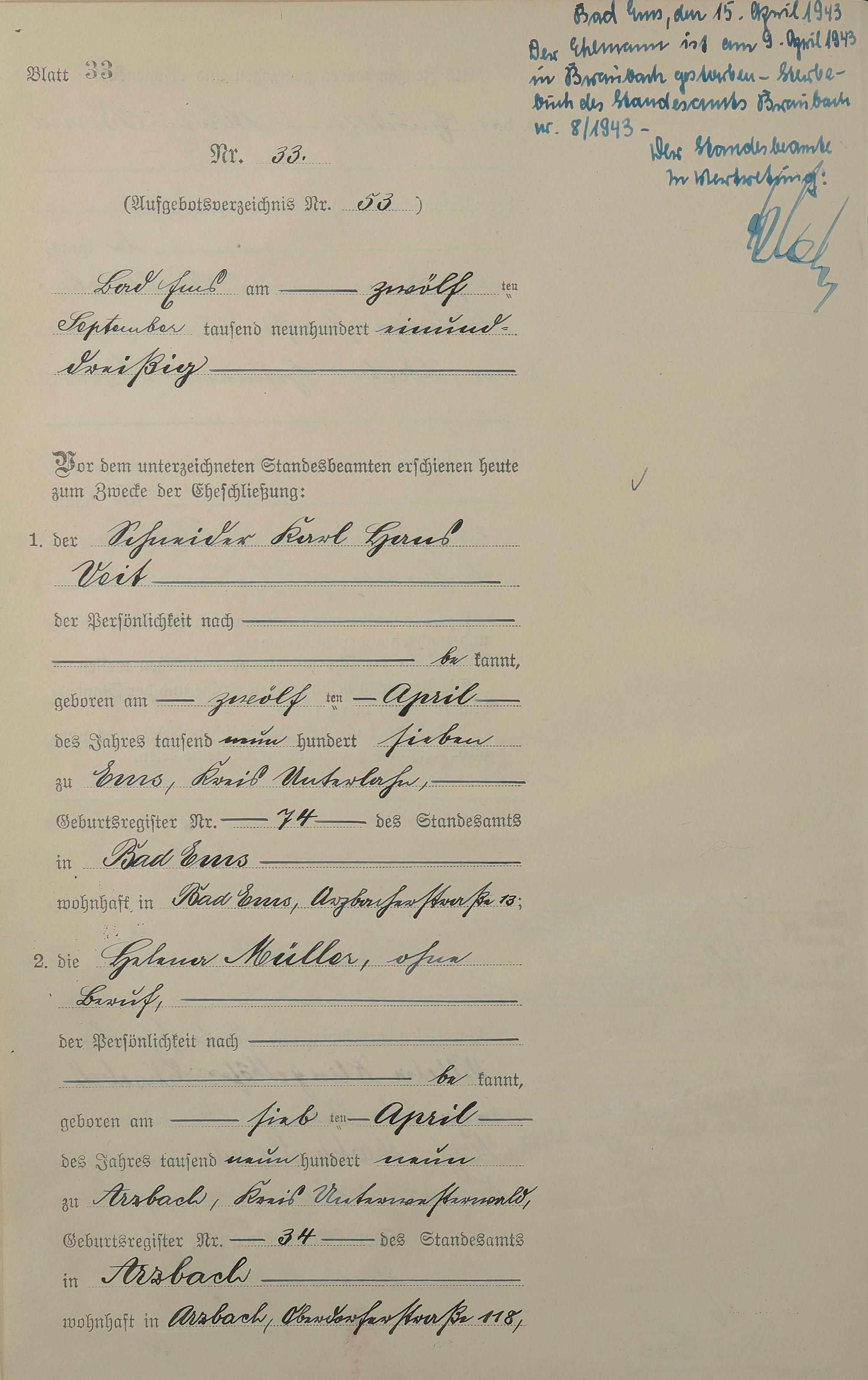 Heiratsregister 1931