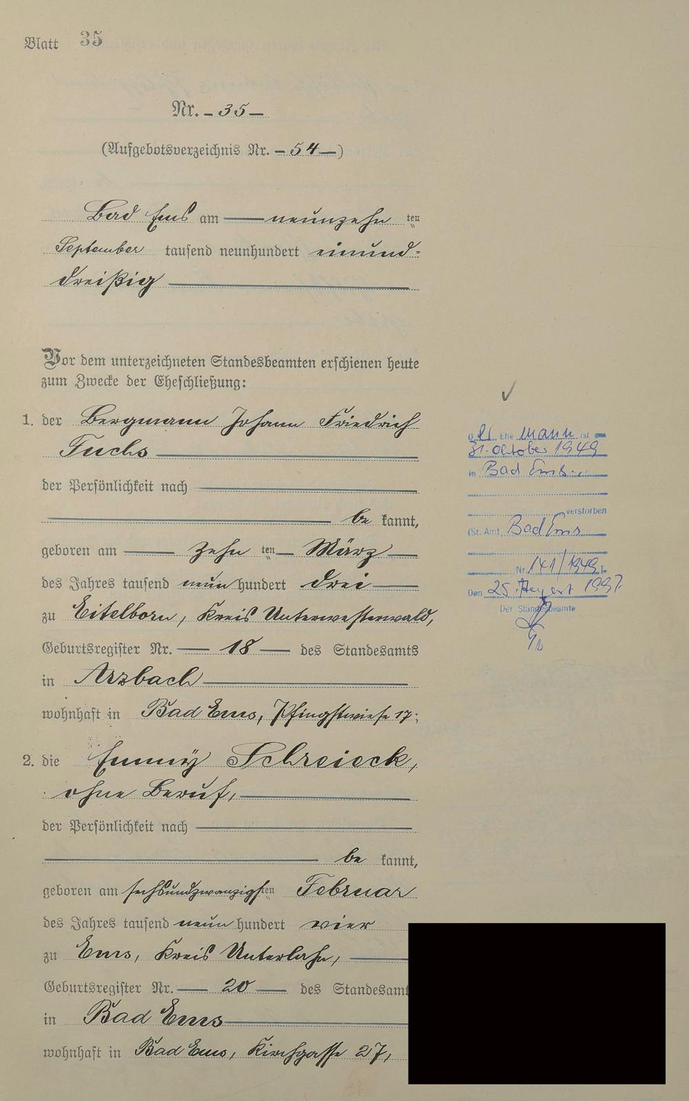 Heiratsregister 1931
