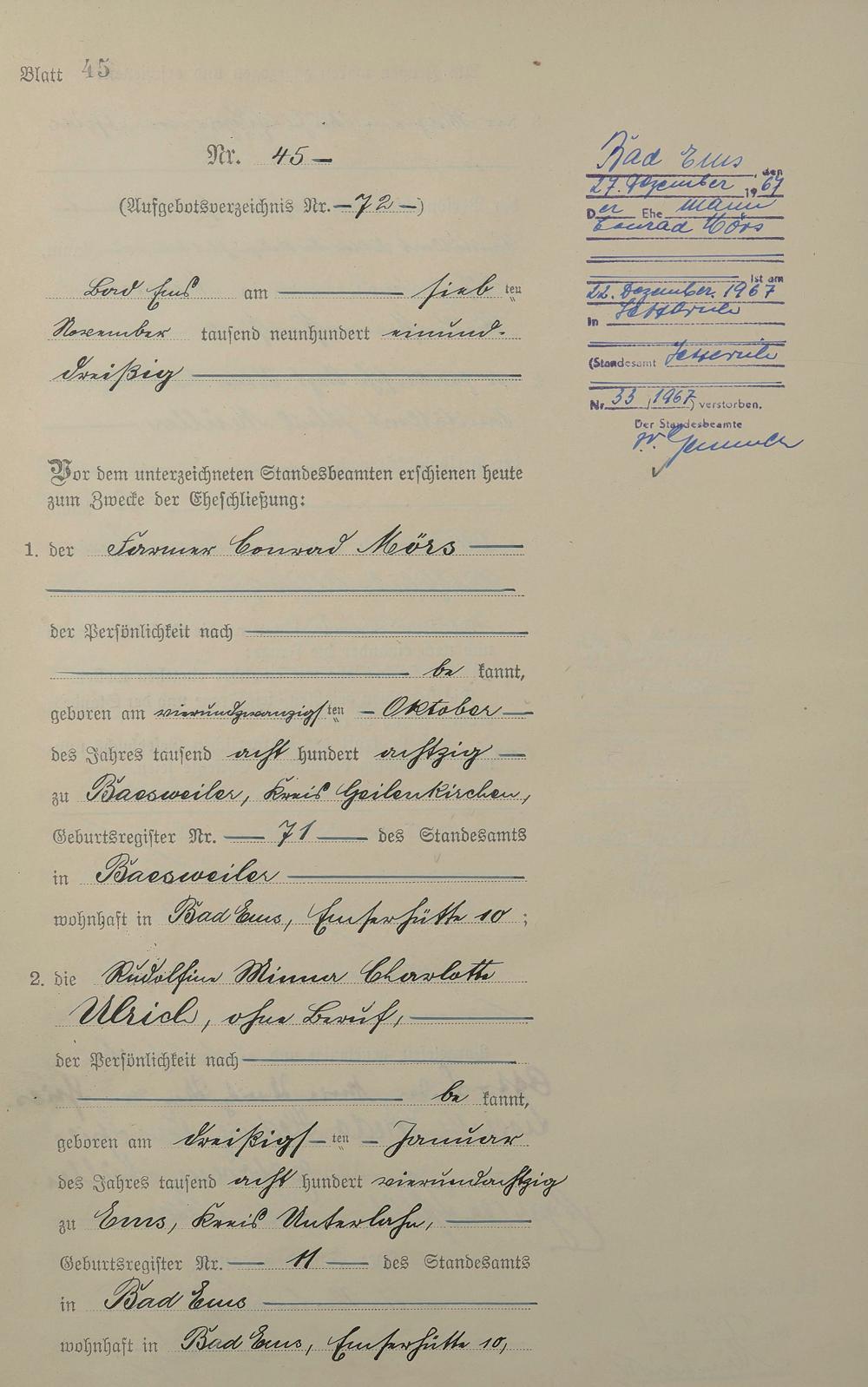 Heiratsregister 1931