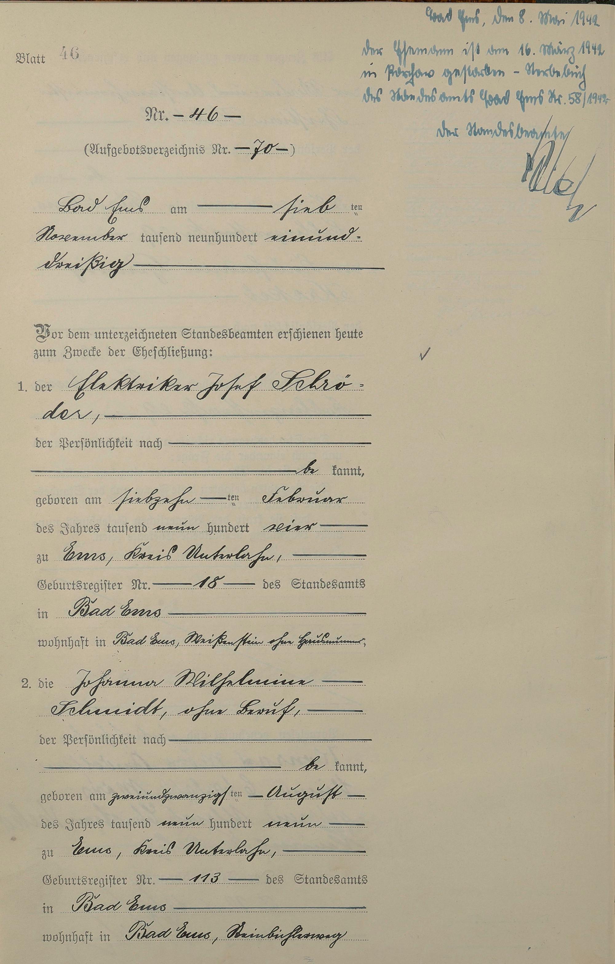 Heiratsregister 1931