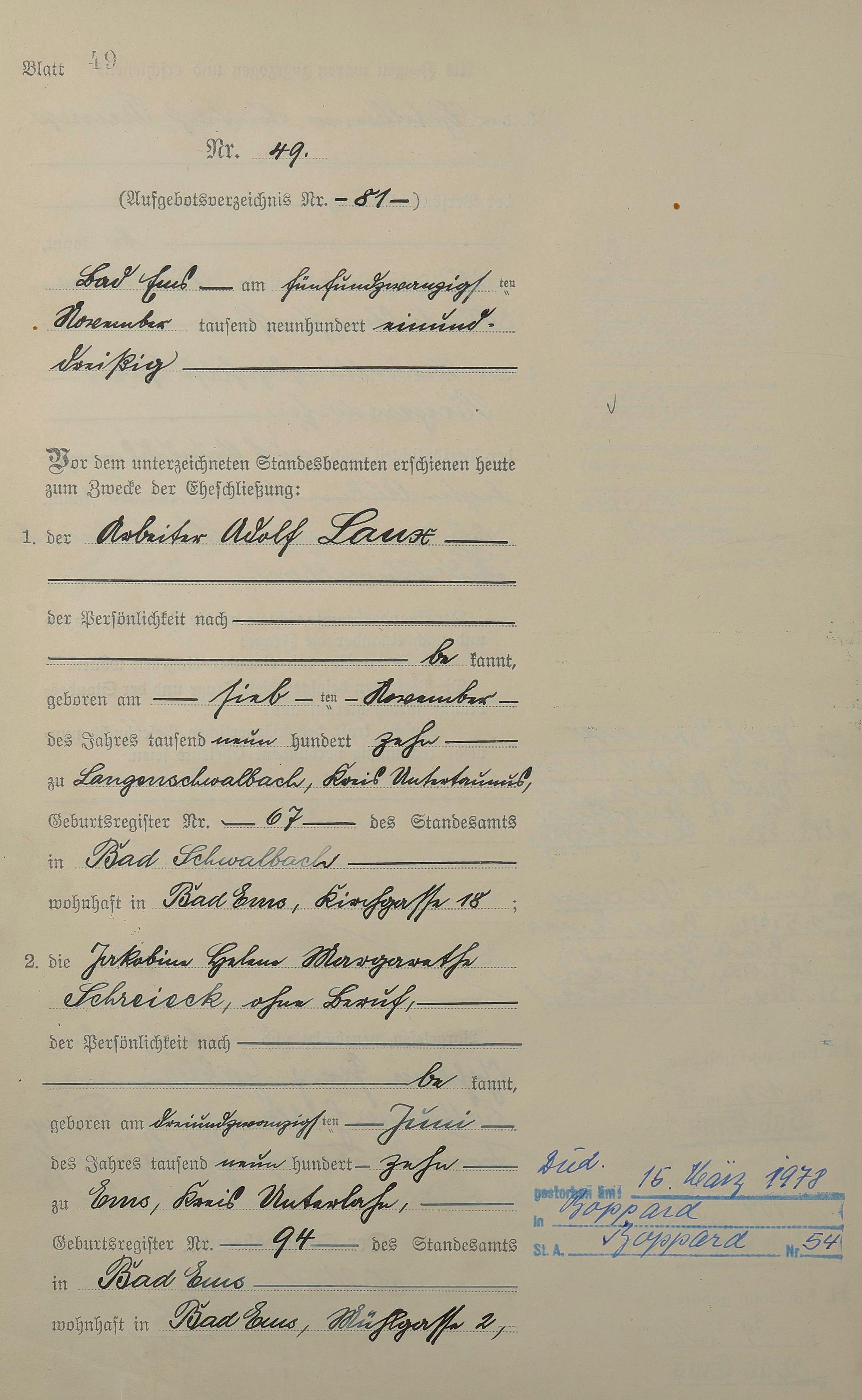 Heiratsregister 1931