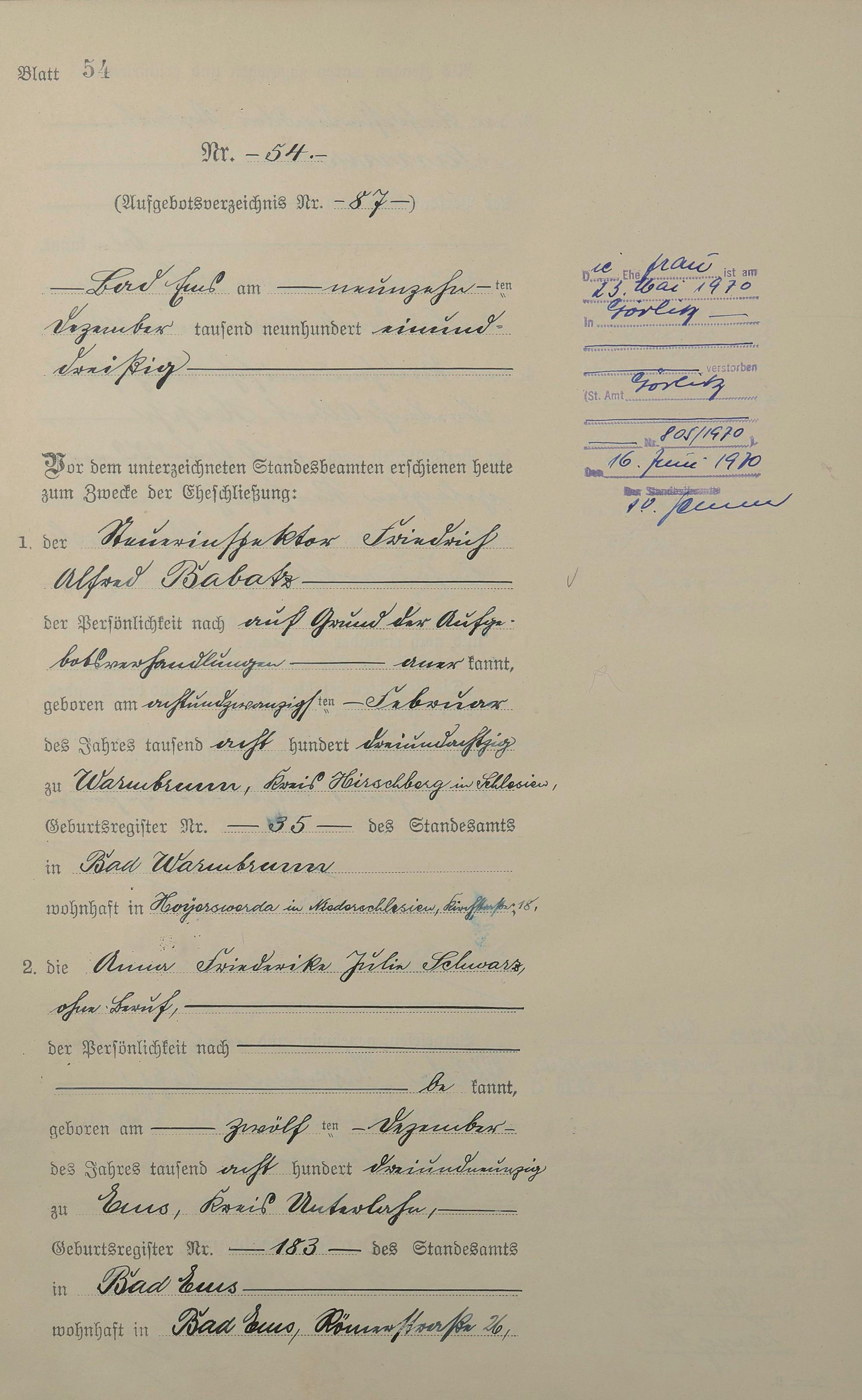 Heiratsregister 1931