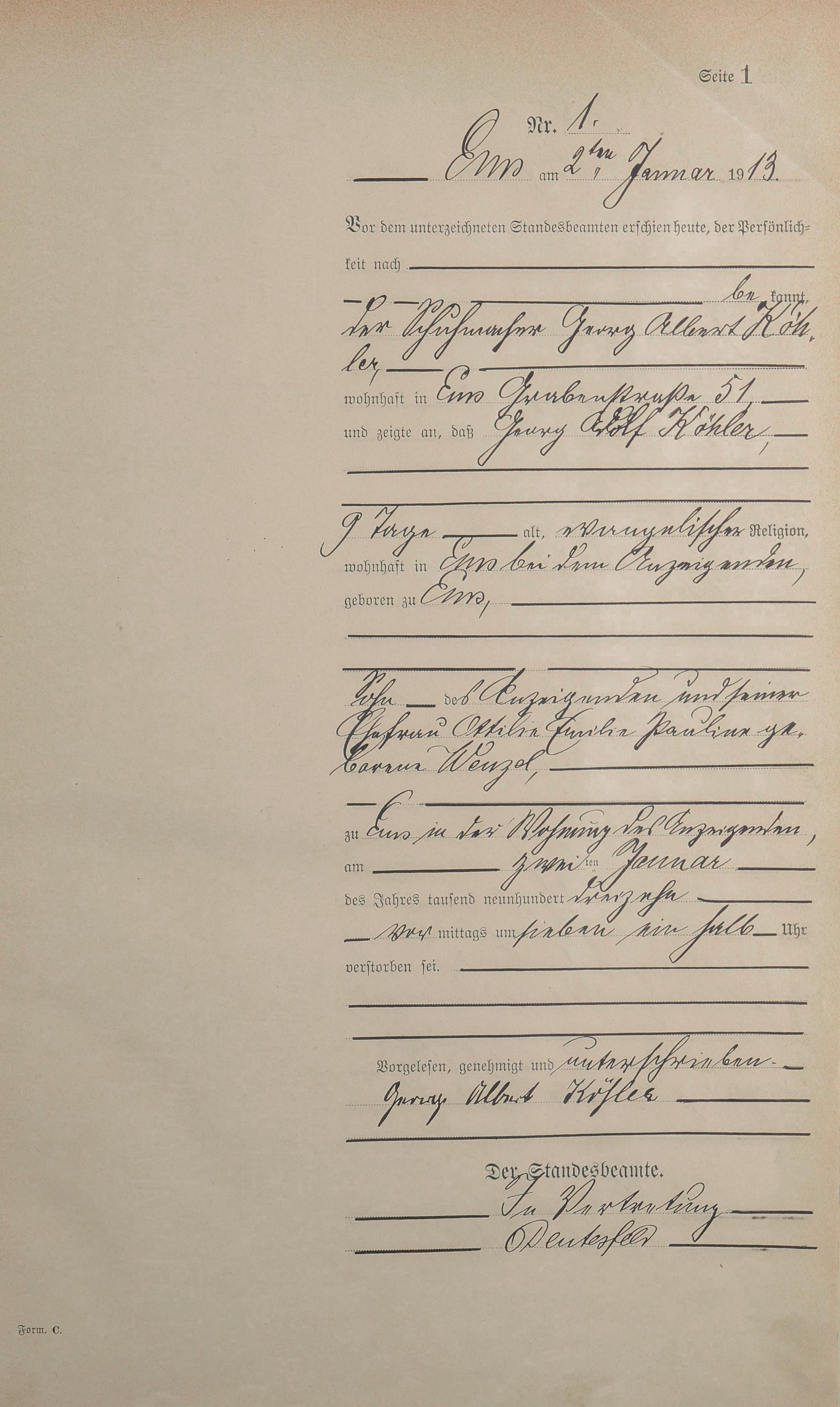 Sterberegister 1913