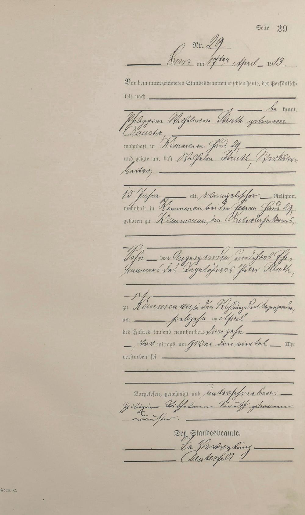 Sterberegister 1913