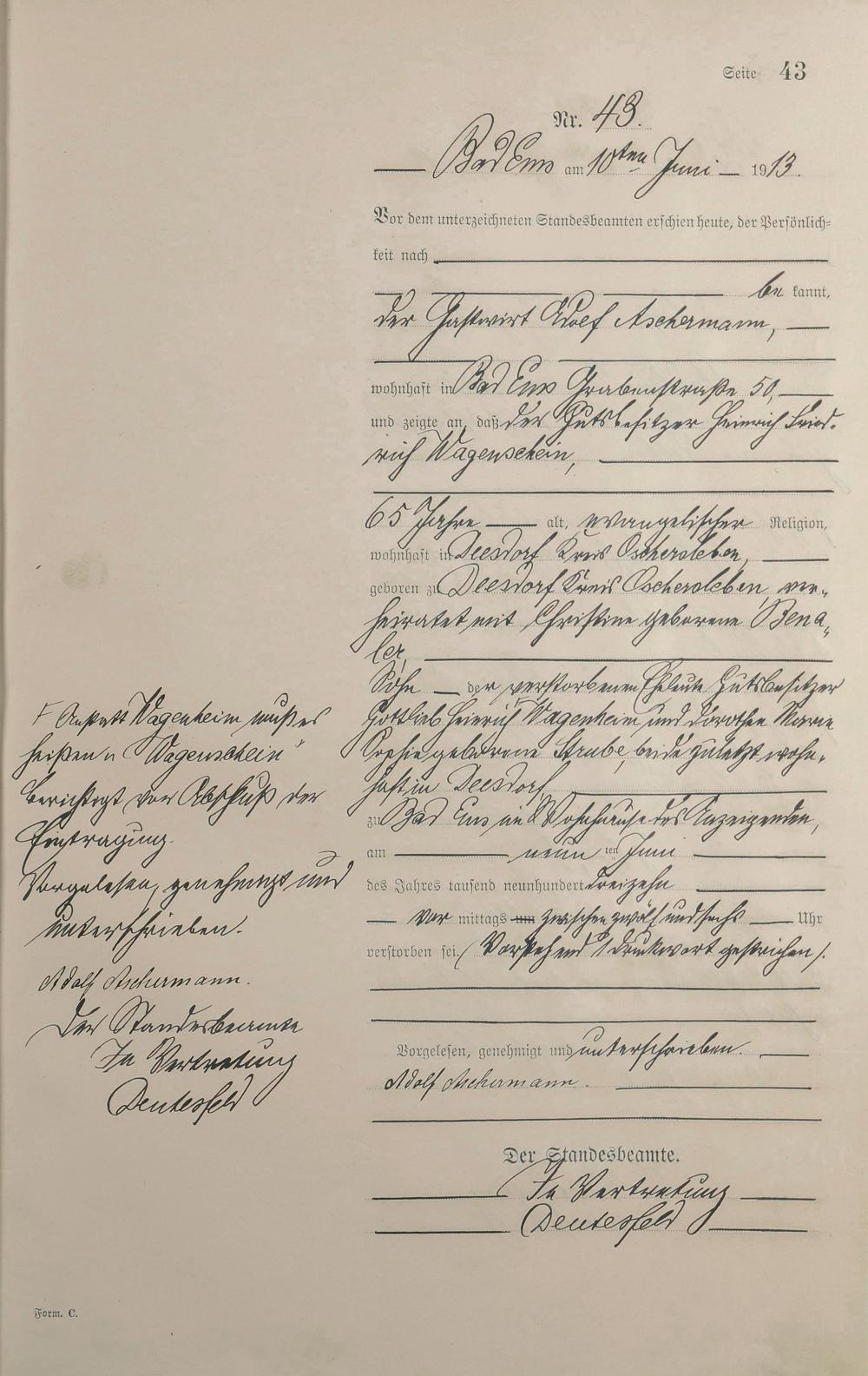 Sterberegister 1913