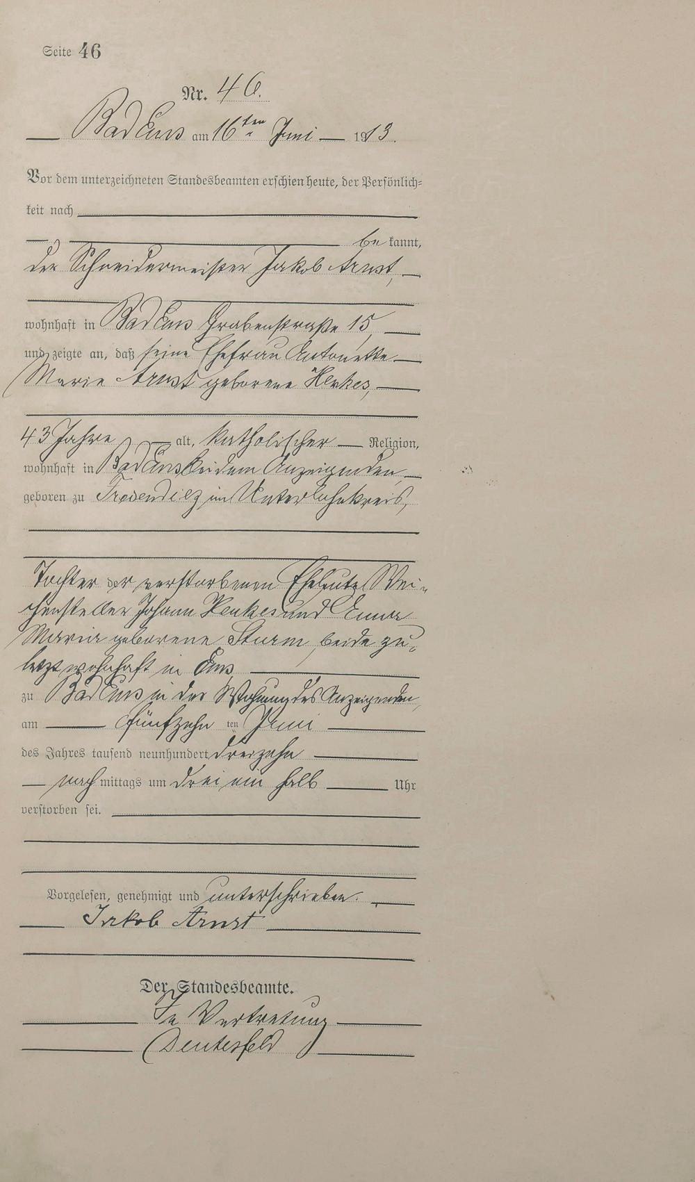 Sterberegister 1913