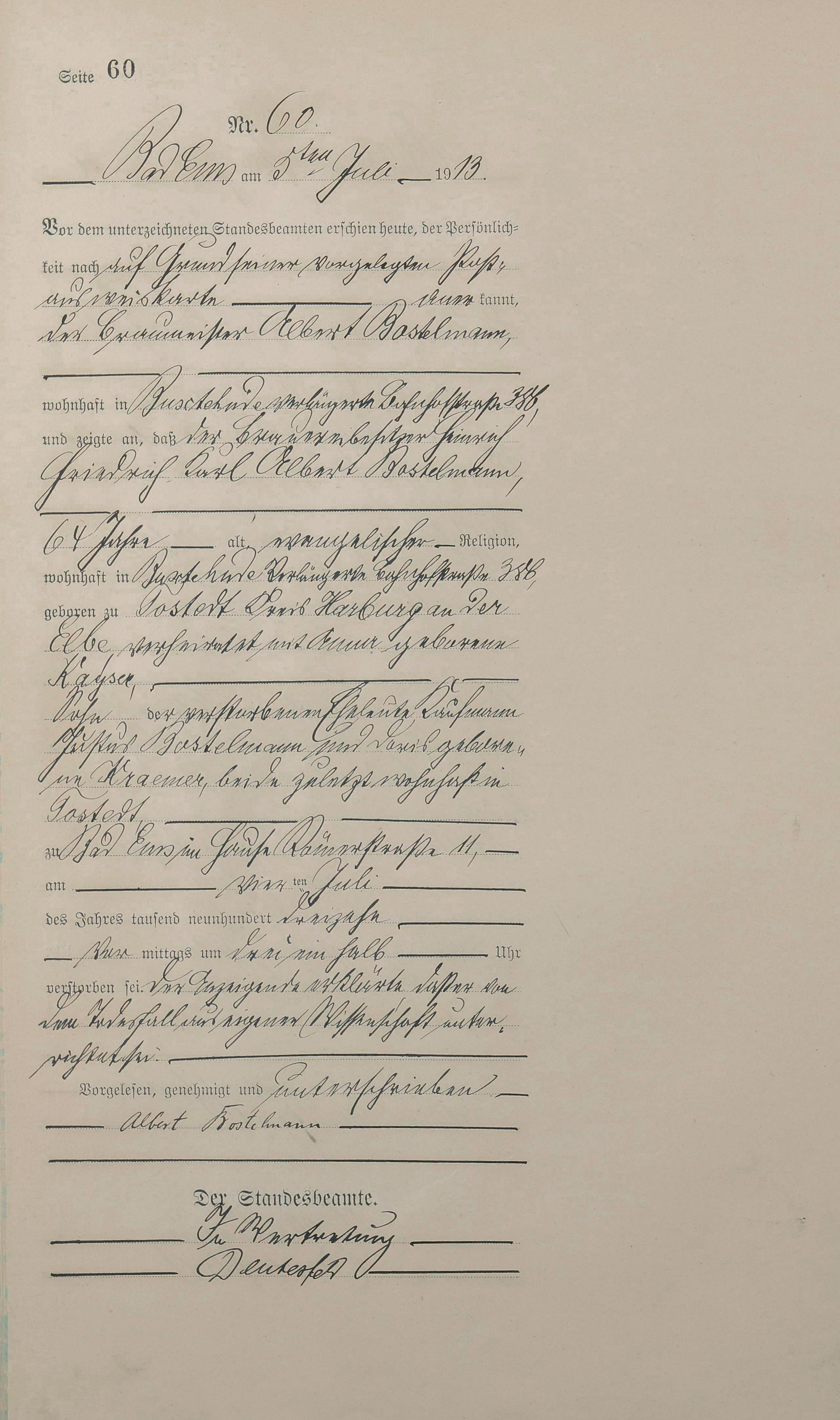 Sterberegister 1913