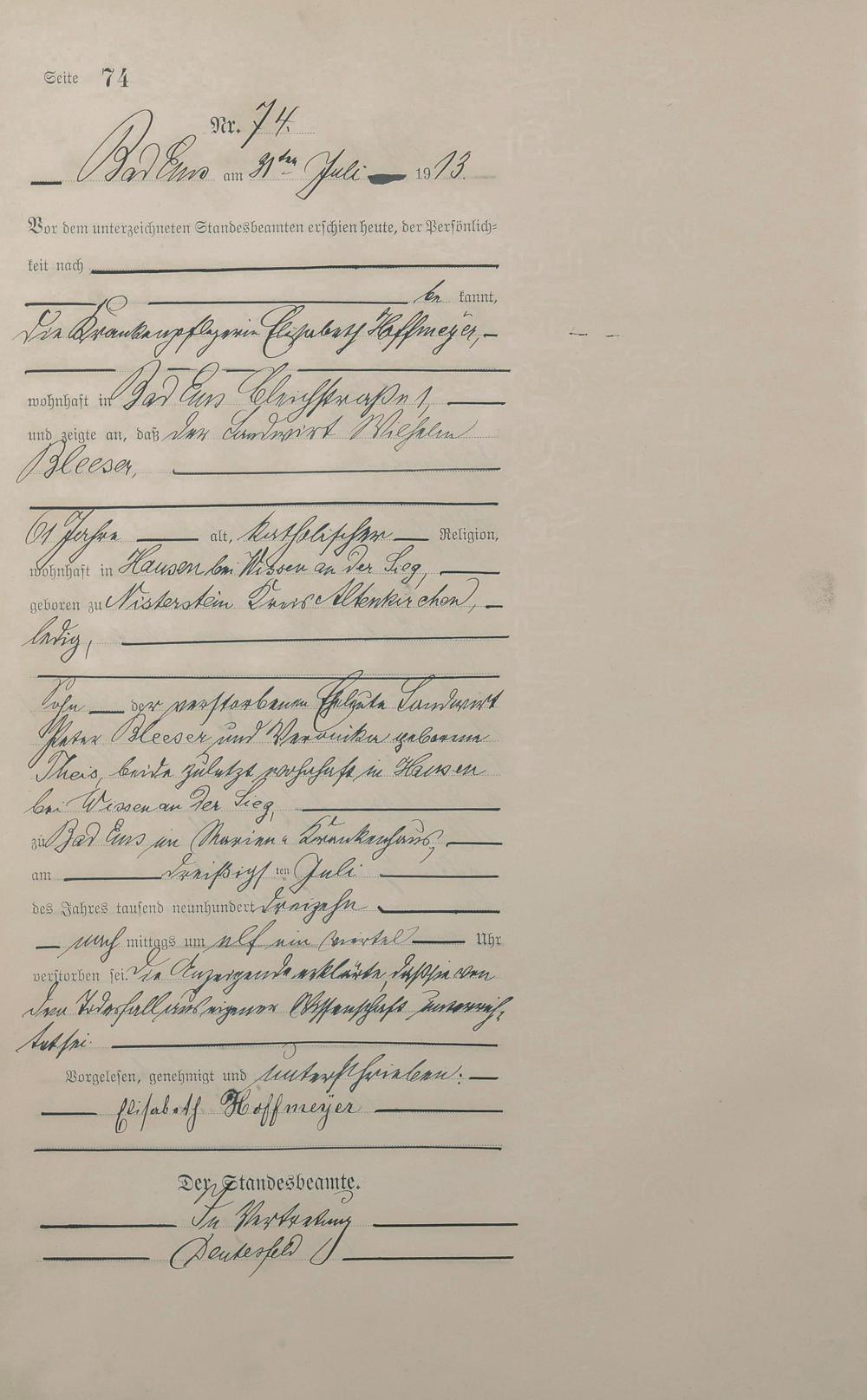 Sterberegister 1913