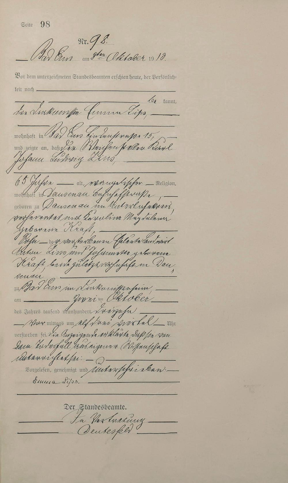 Sterberegister 1913
