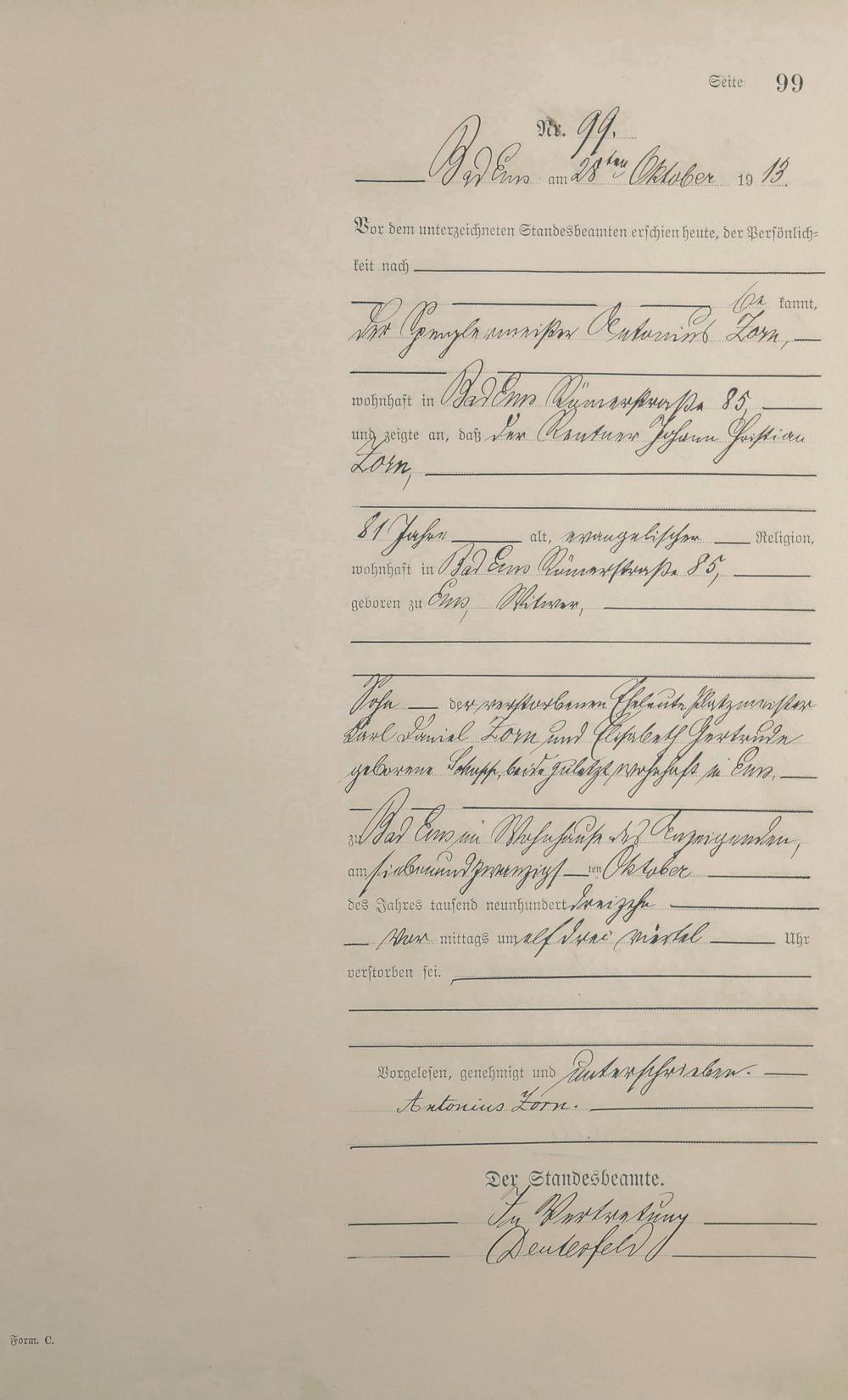 Sterberegister 1913