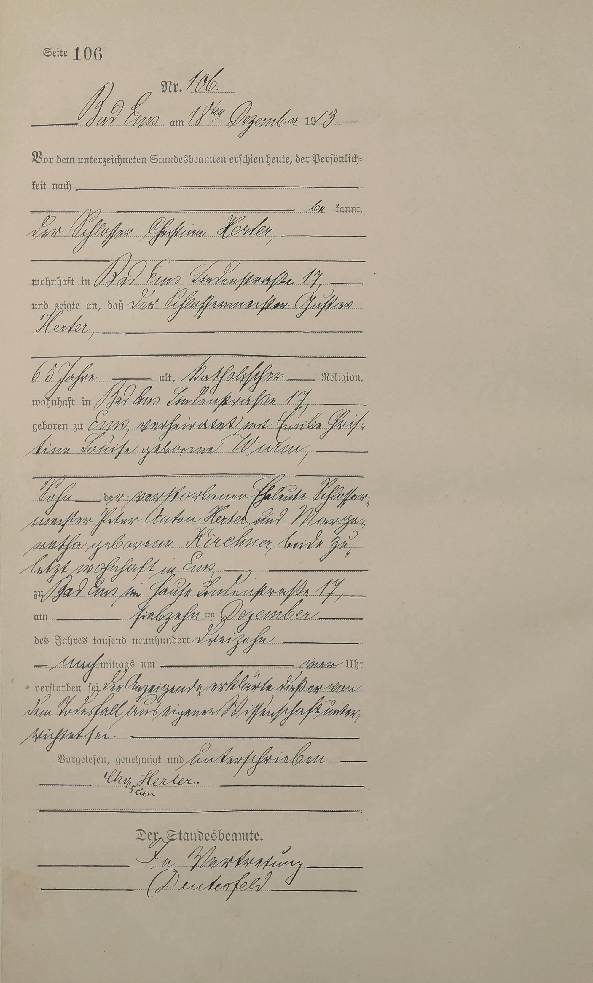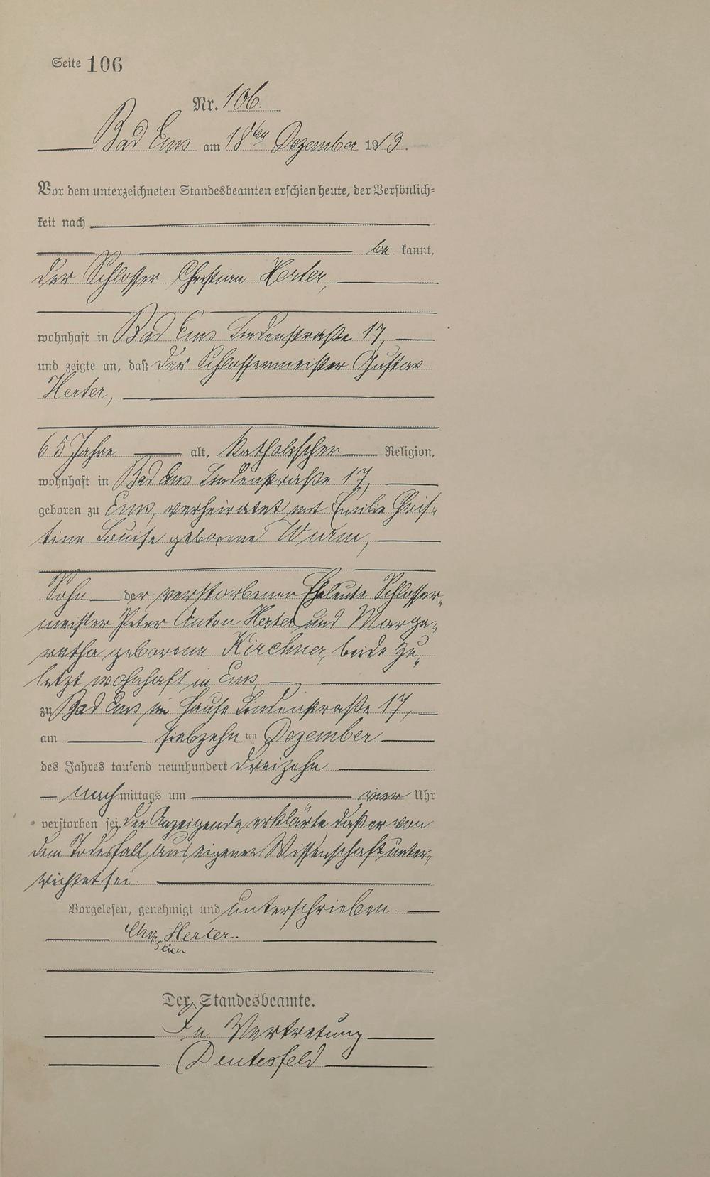 Sterberegister 1913