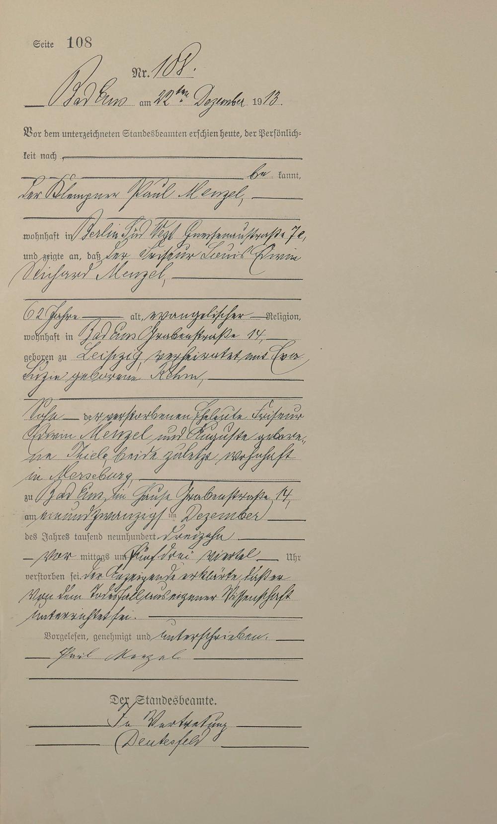 Sterberegister 1913