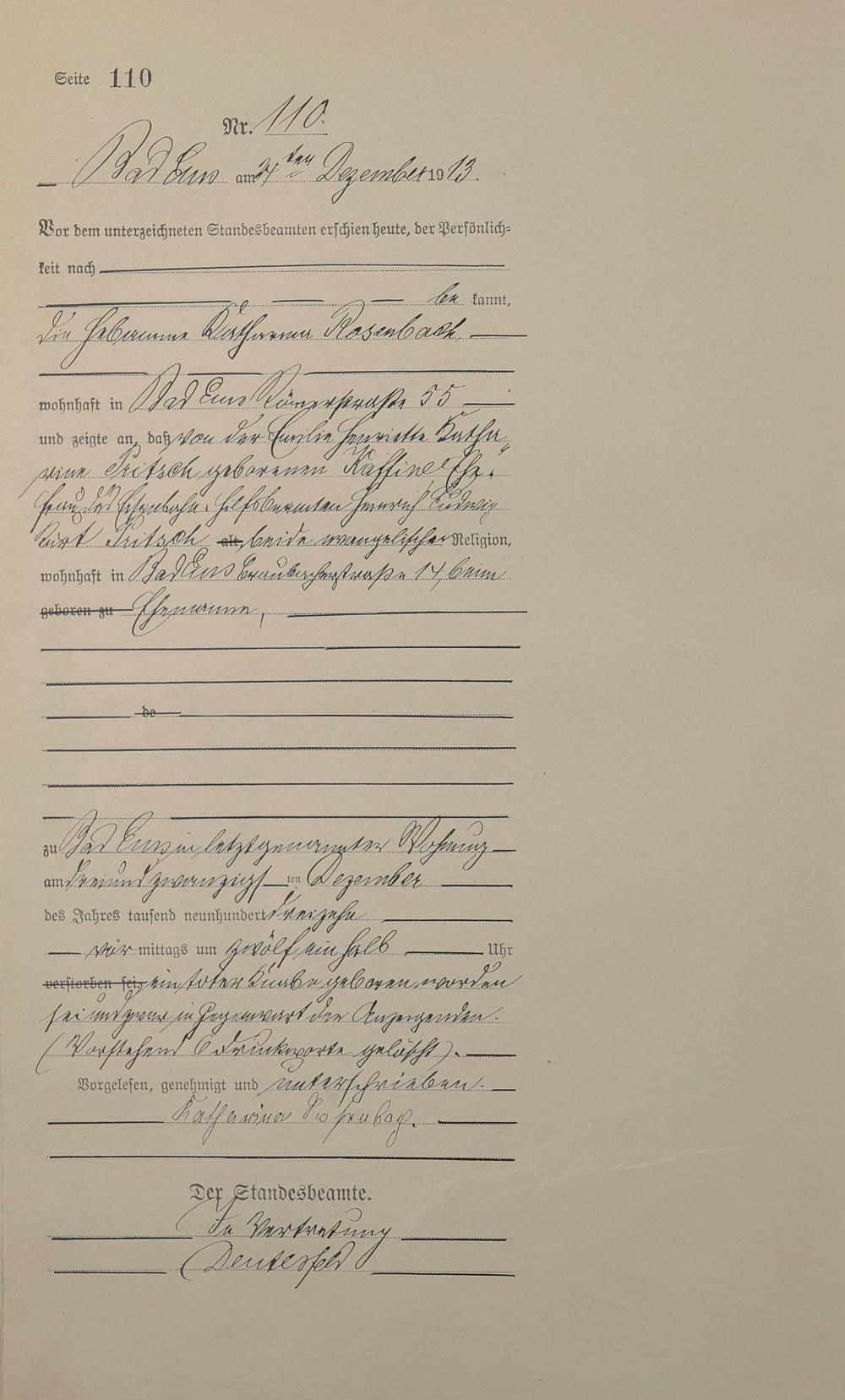 Sterberegister 1913