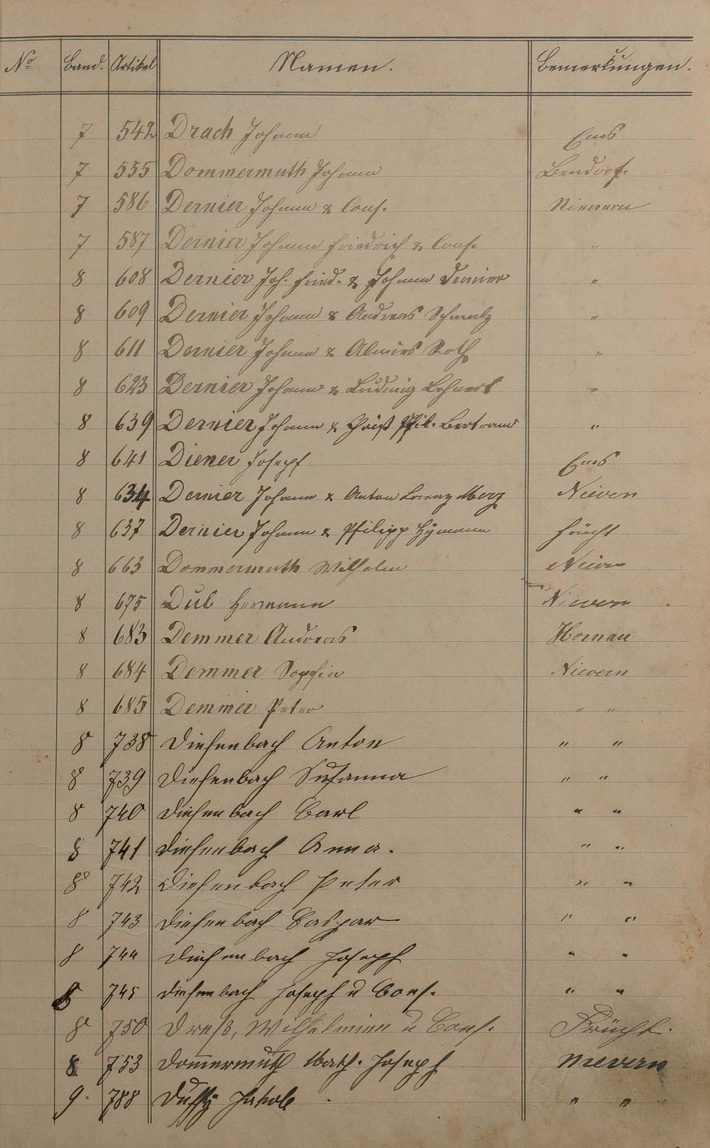 Alphabetisches Verzeichnis zum Stockbuch