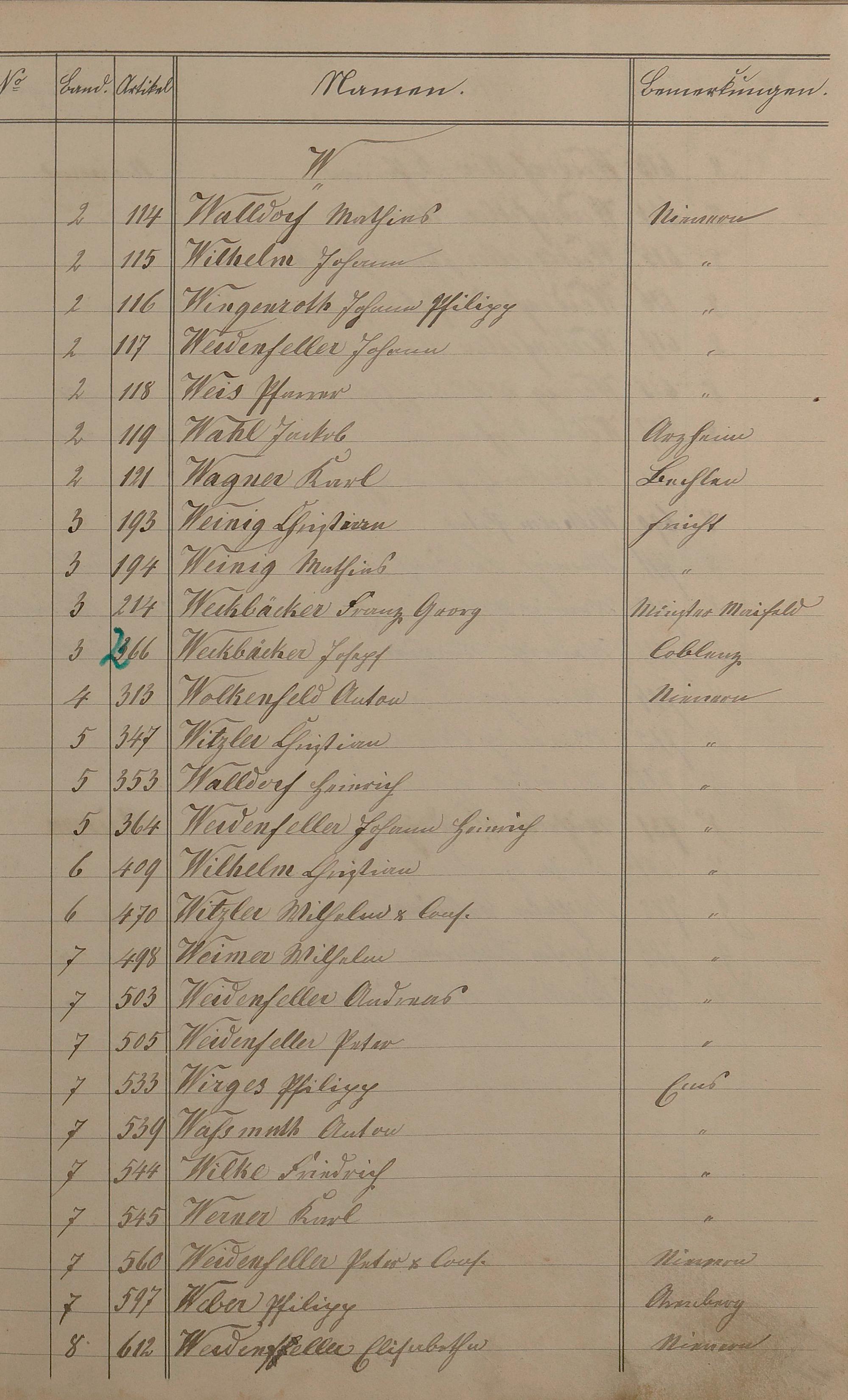 Alphabetisches Verzeichnis zum Stockbuch