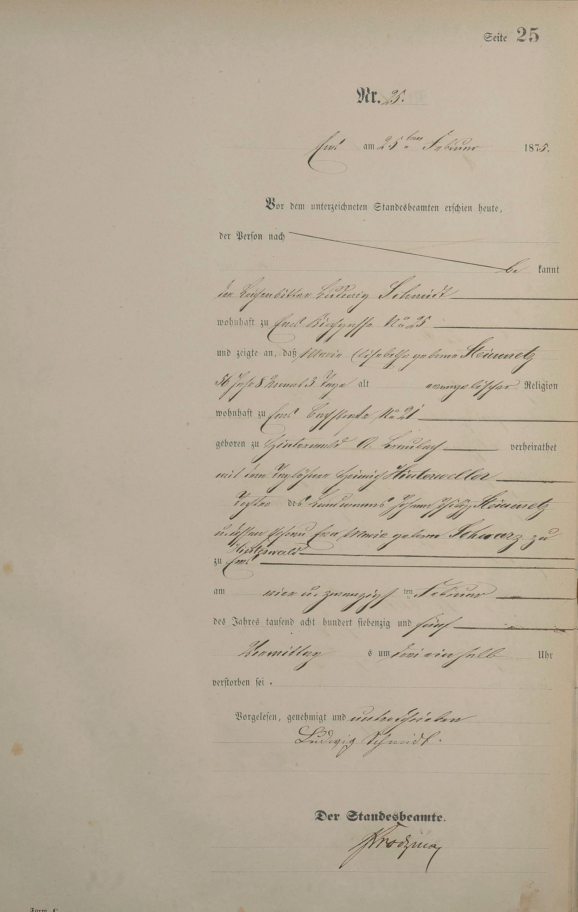 Sterberegister 1875