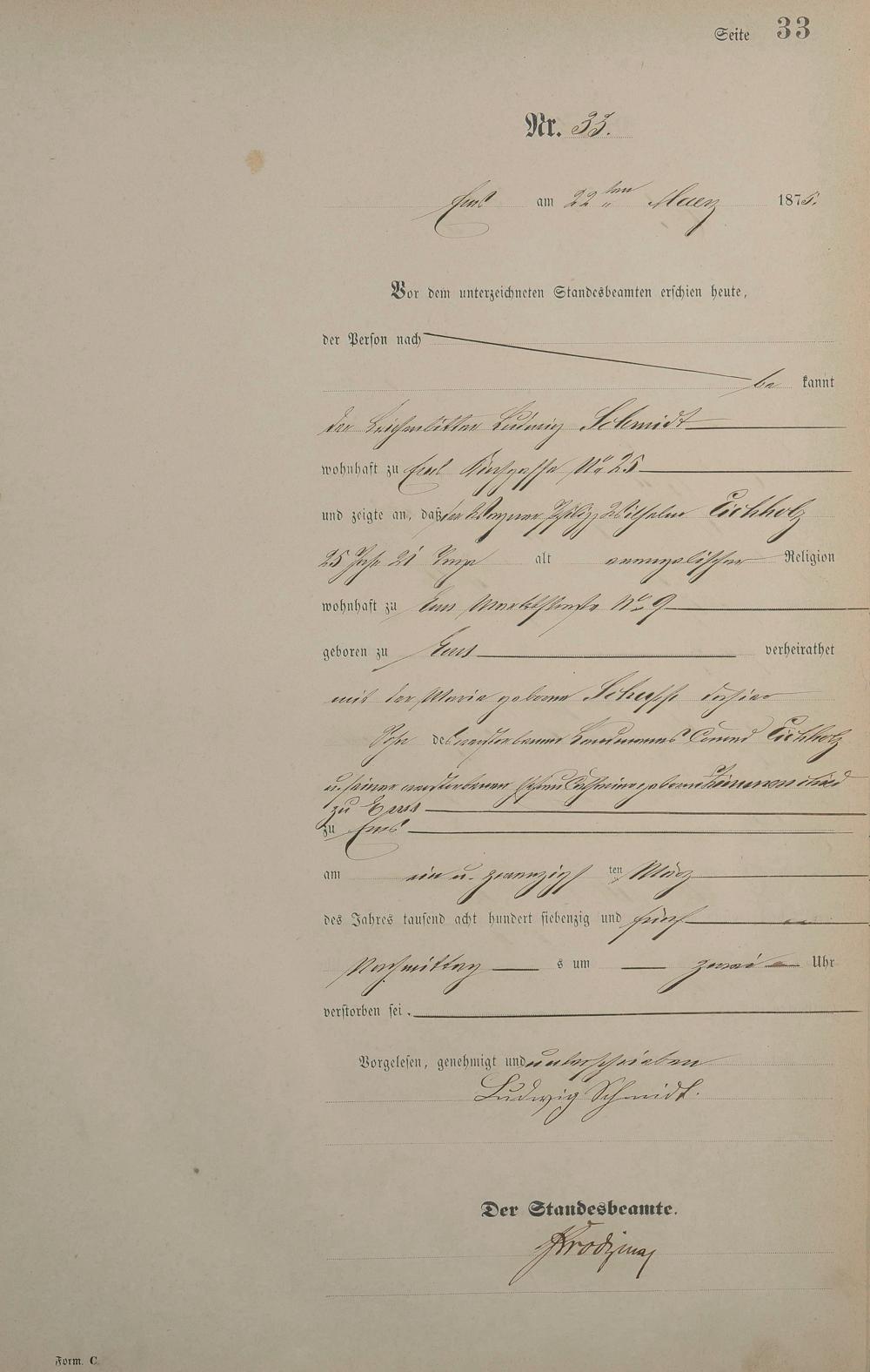 Sterberegister 1875