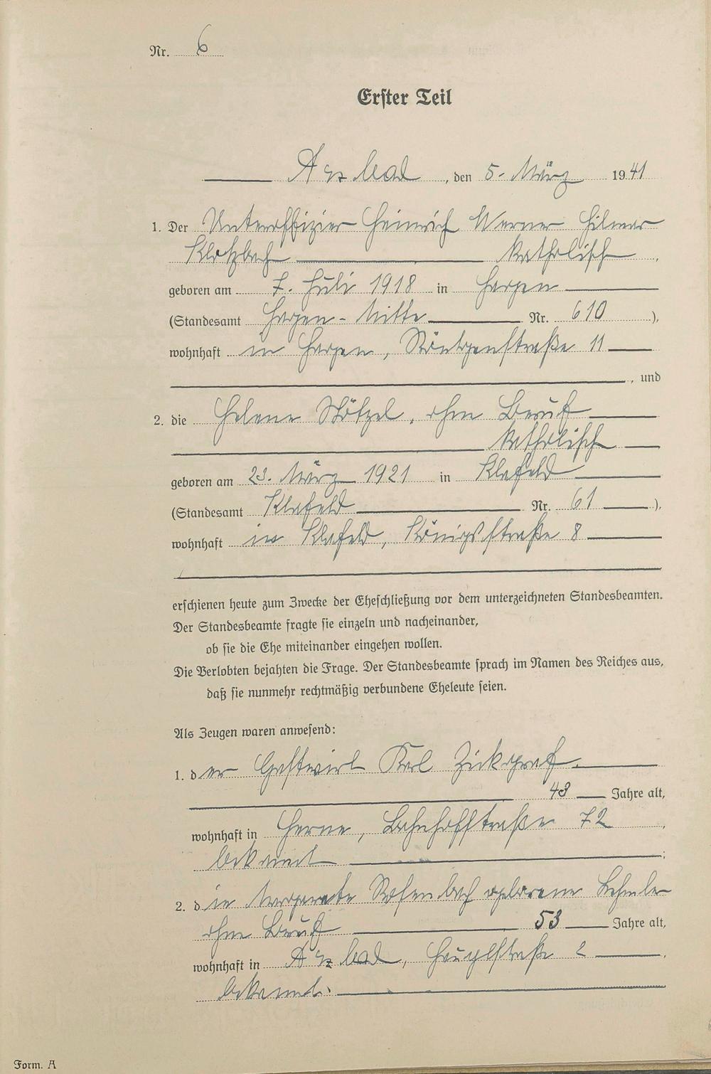 Heiratsregister 1941