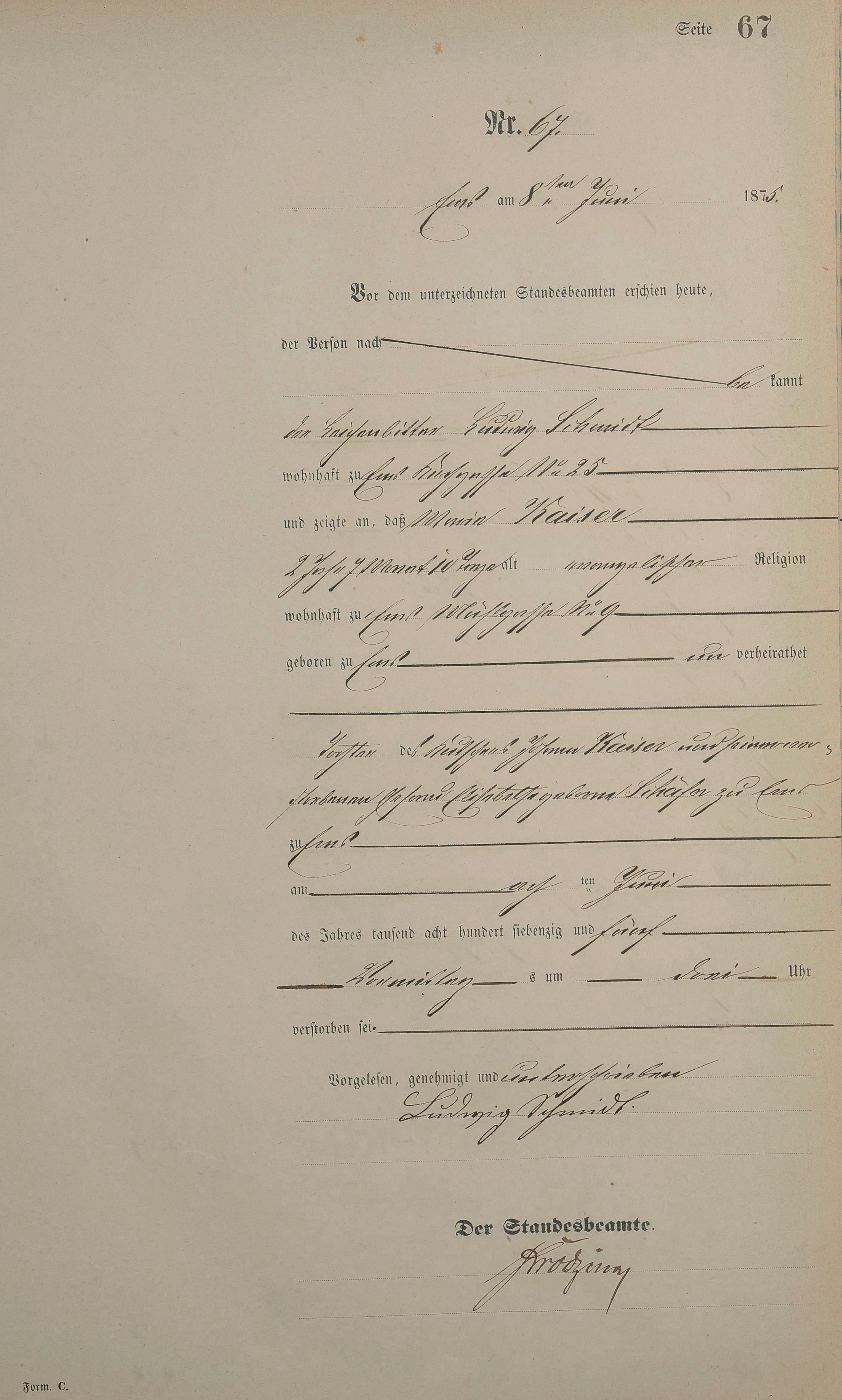 Sterberegister 1875