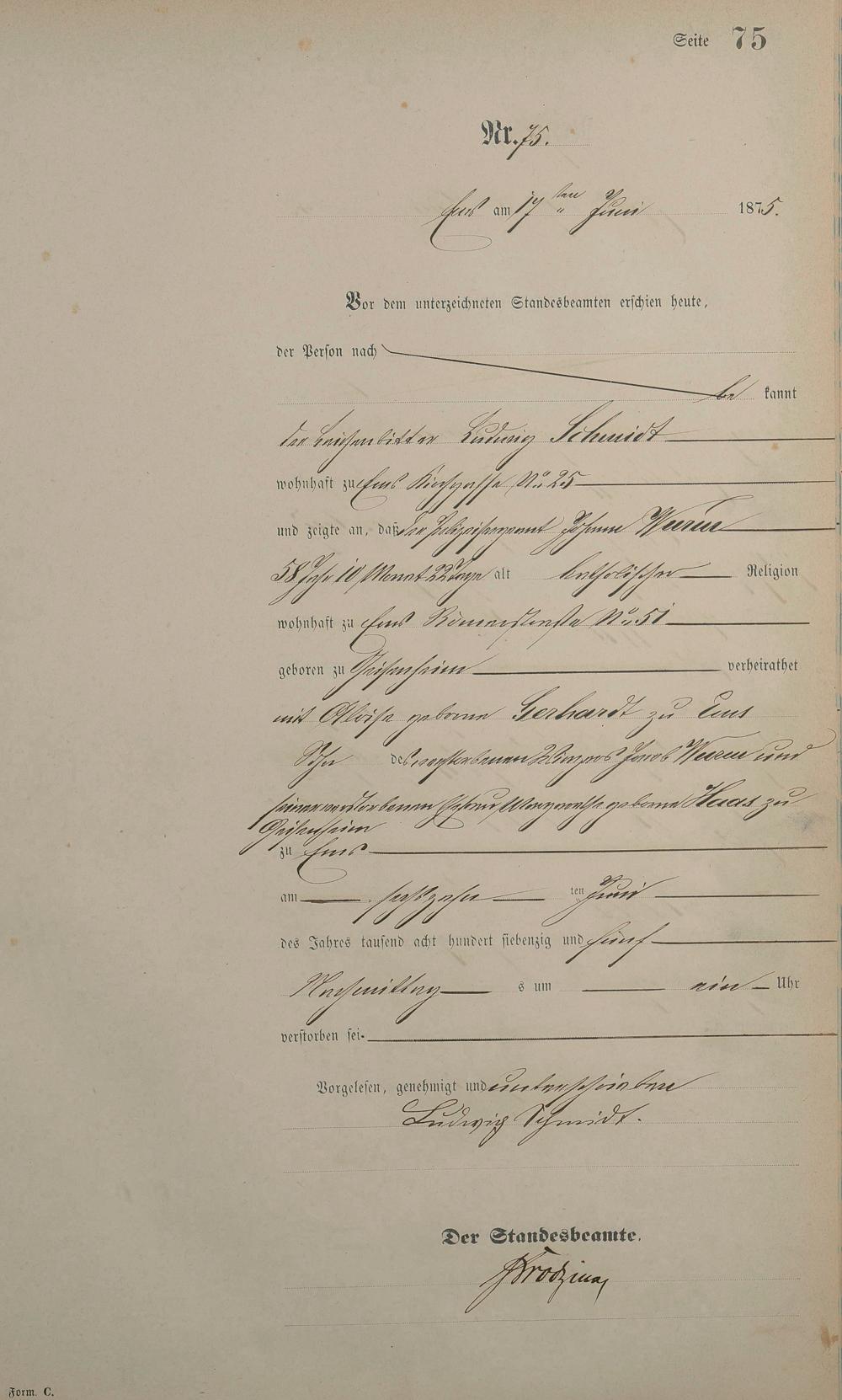 Sterberegister 1875