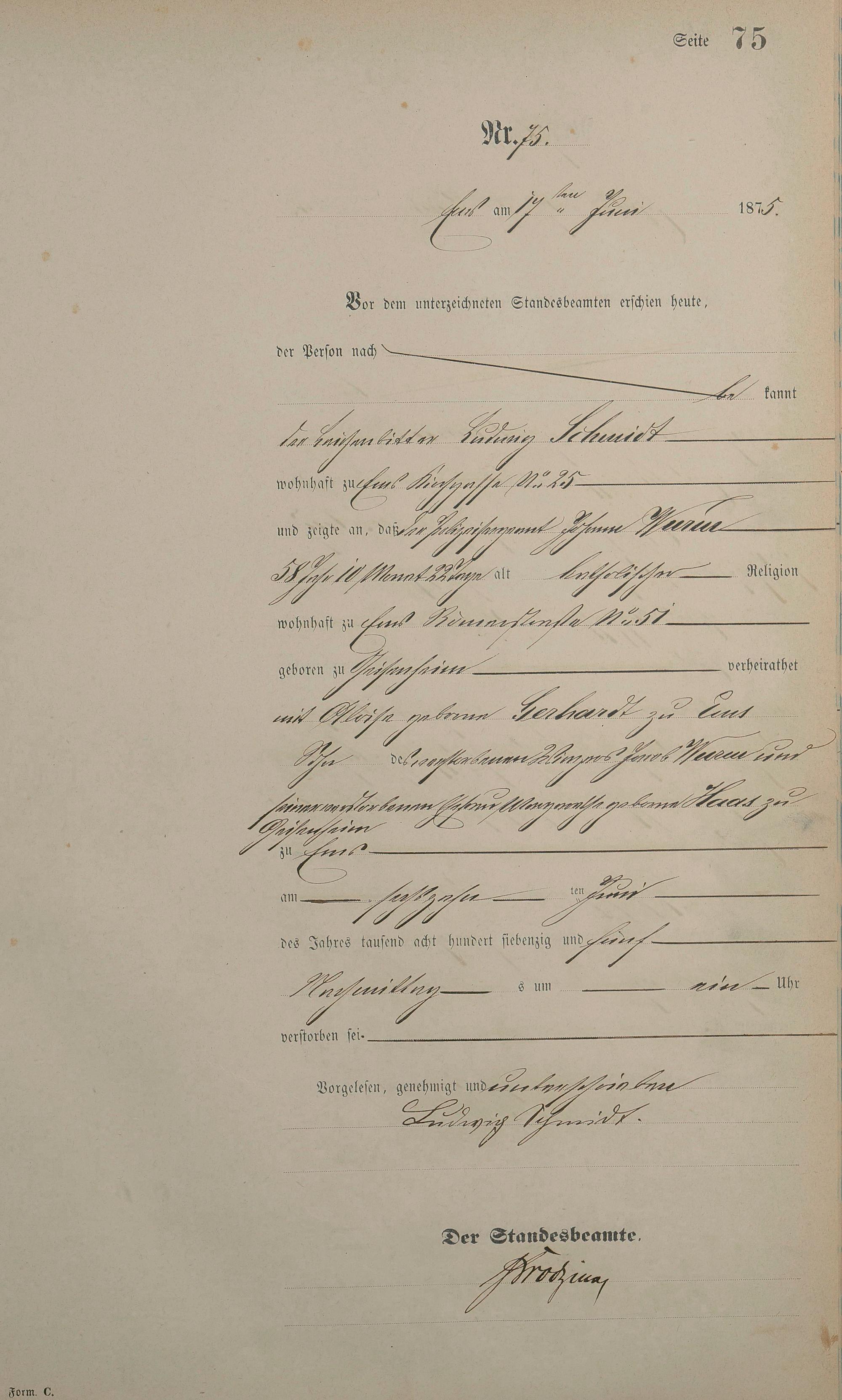 1451: Sterberegister 1875