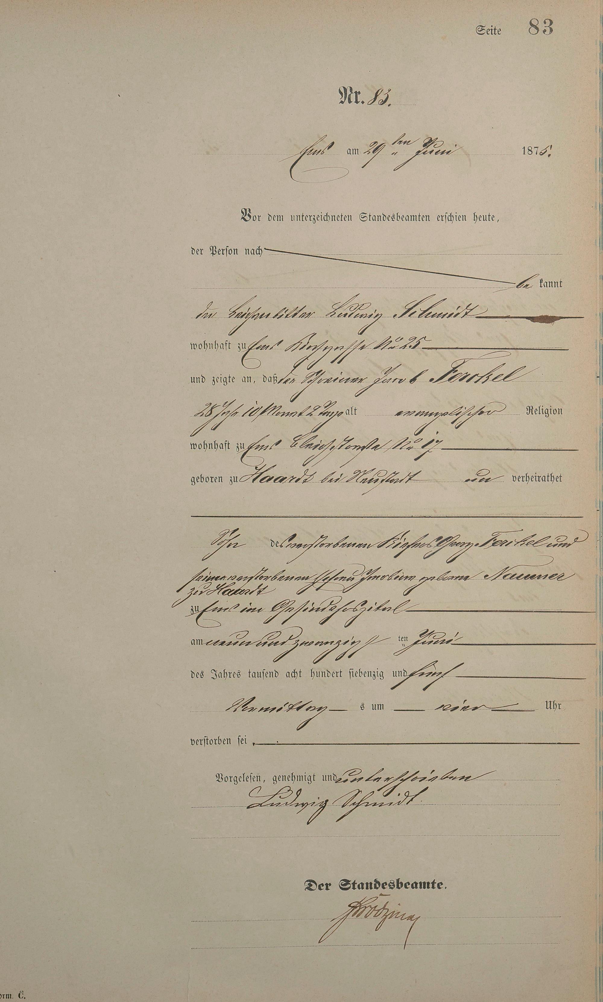Sterberegister 1875