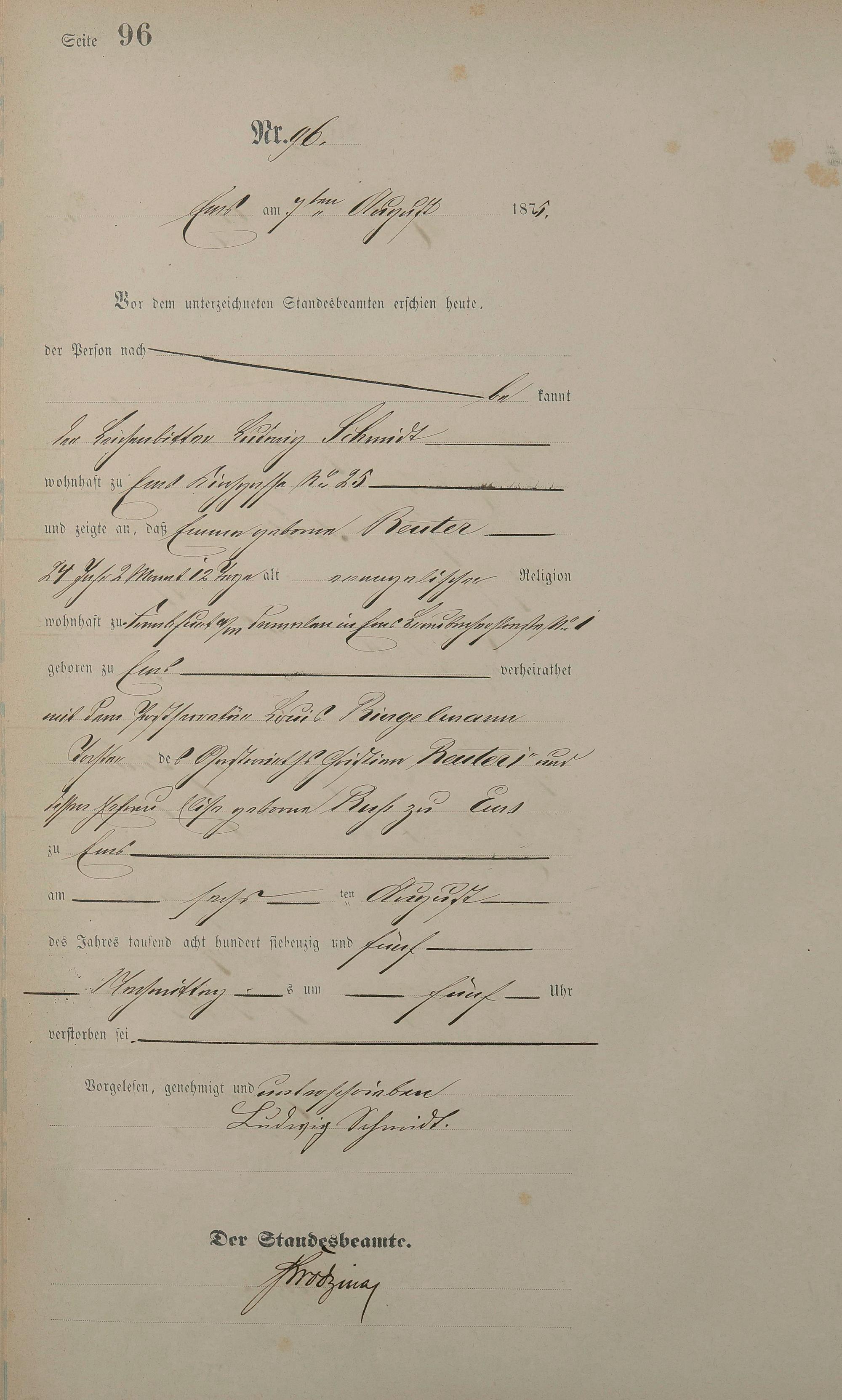 Sterberegister 1875