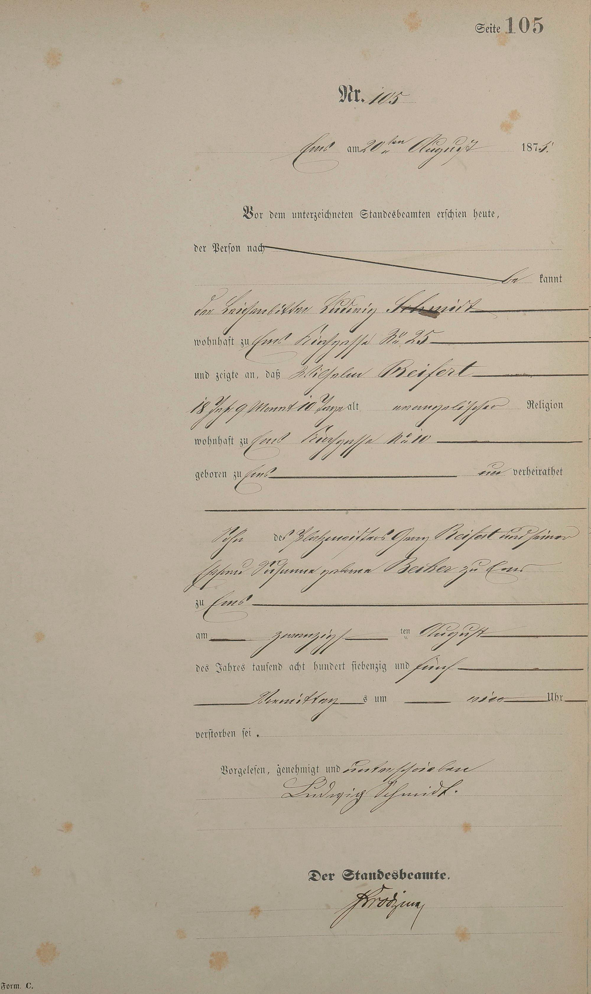 1451: Sterberegister 1875