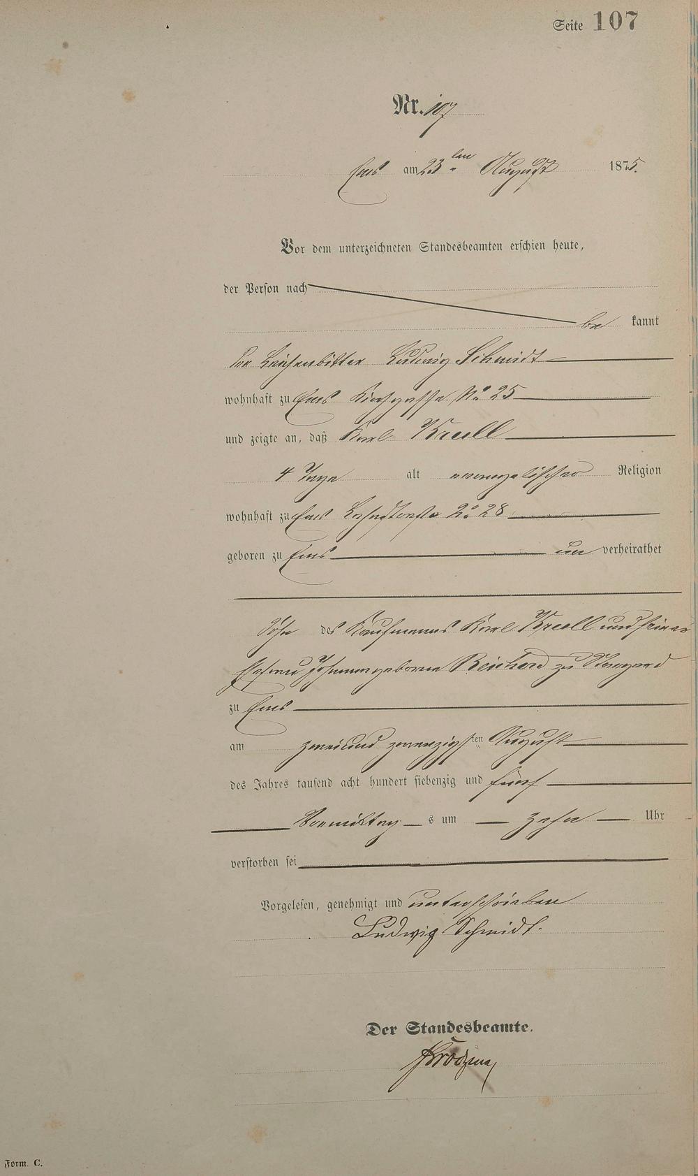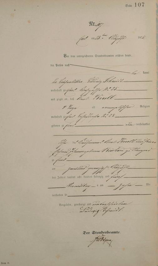Sterberegister 1875