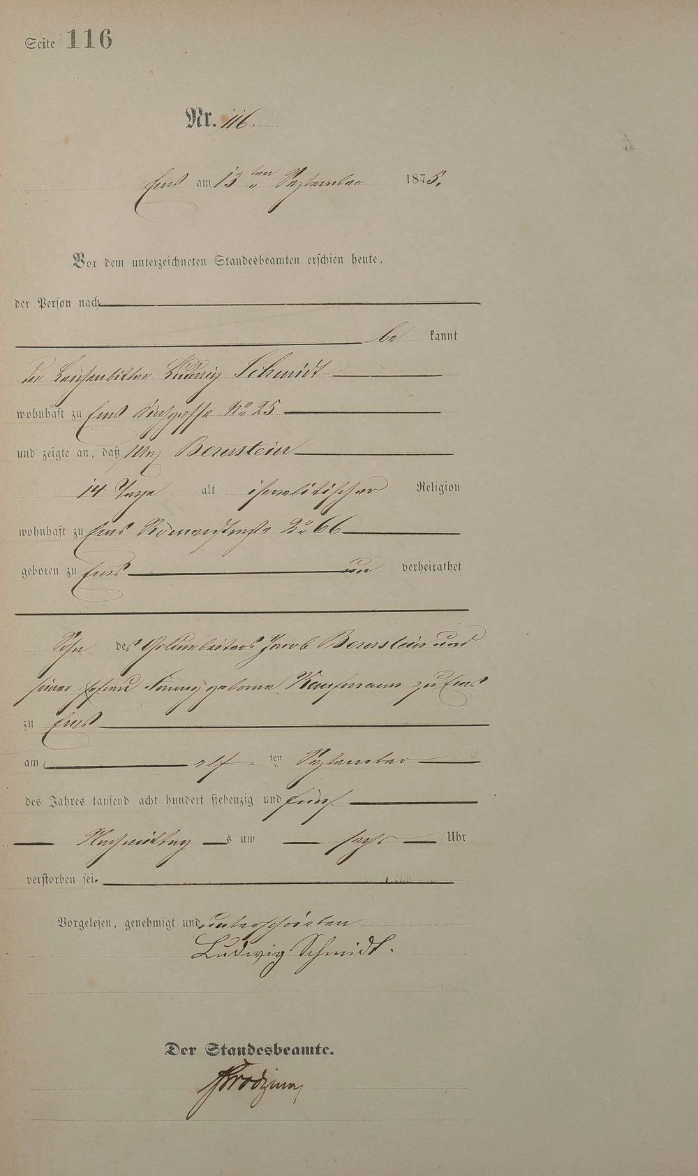 Sterberegister 1875