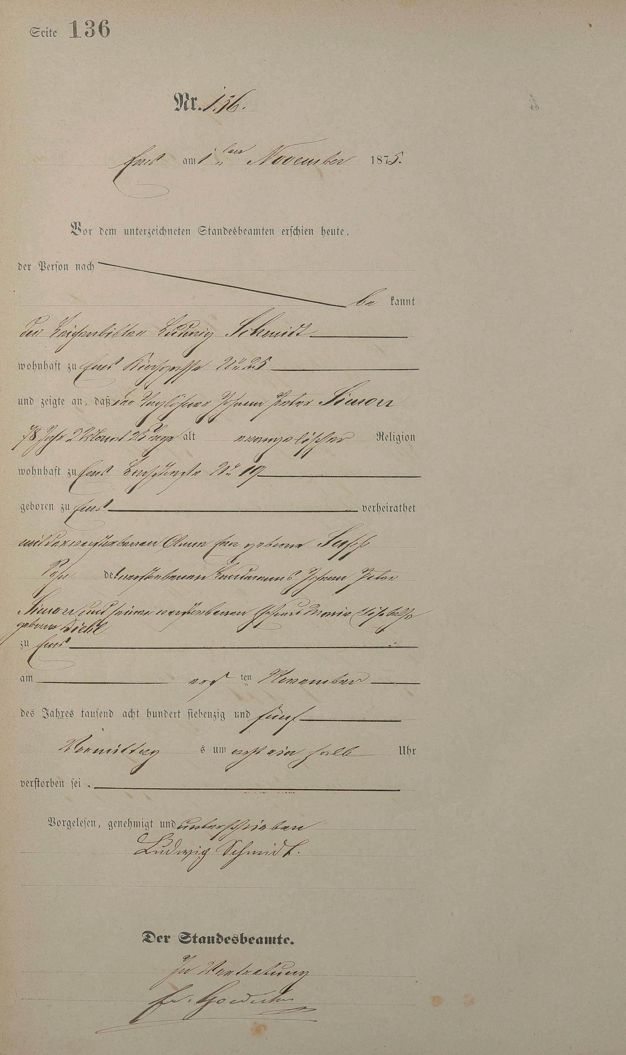 1451: Sterberegister 1875