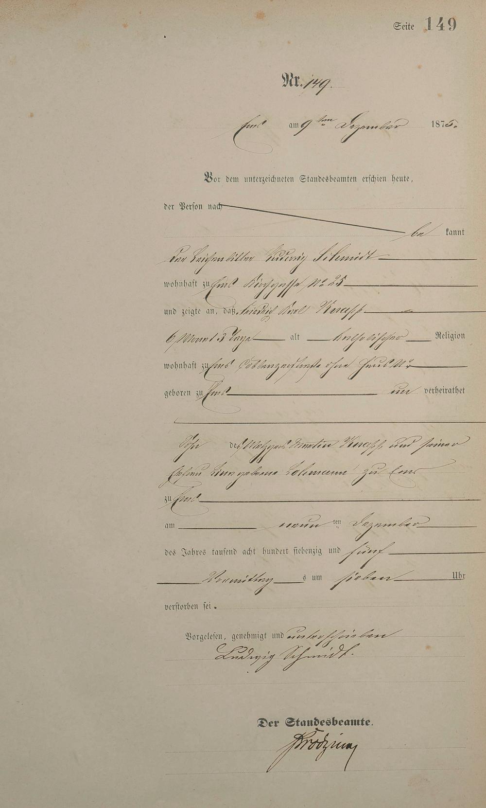 Sterberegister 1875